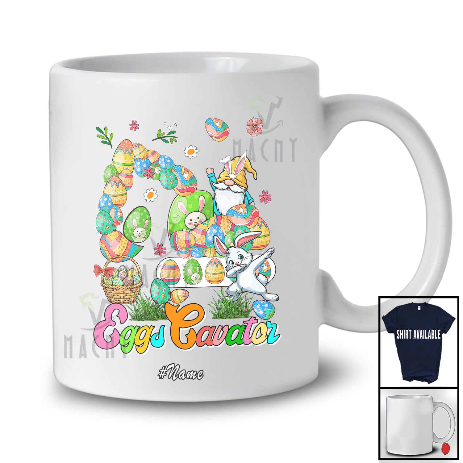 Personalized Custom Name Eggs Cavator; Lovely Easter Eggs Excavator Shape; Dabbing Bunny Gnome T-Shirt. This cotton t-shirt is a durable staple product with a classic fit. One of the most popular items, it has a relaxed style made for everyday and casual wear.