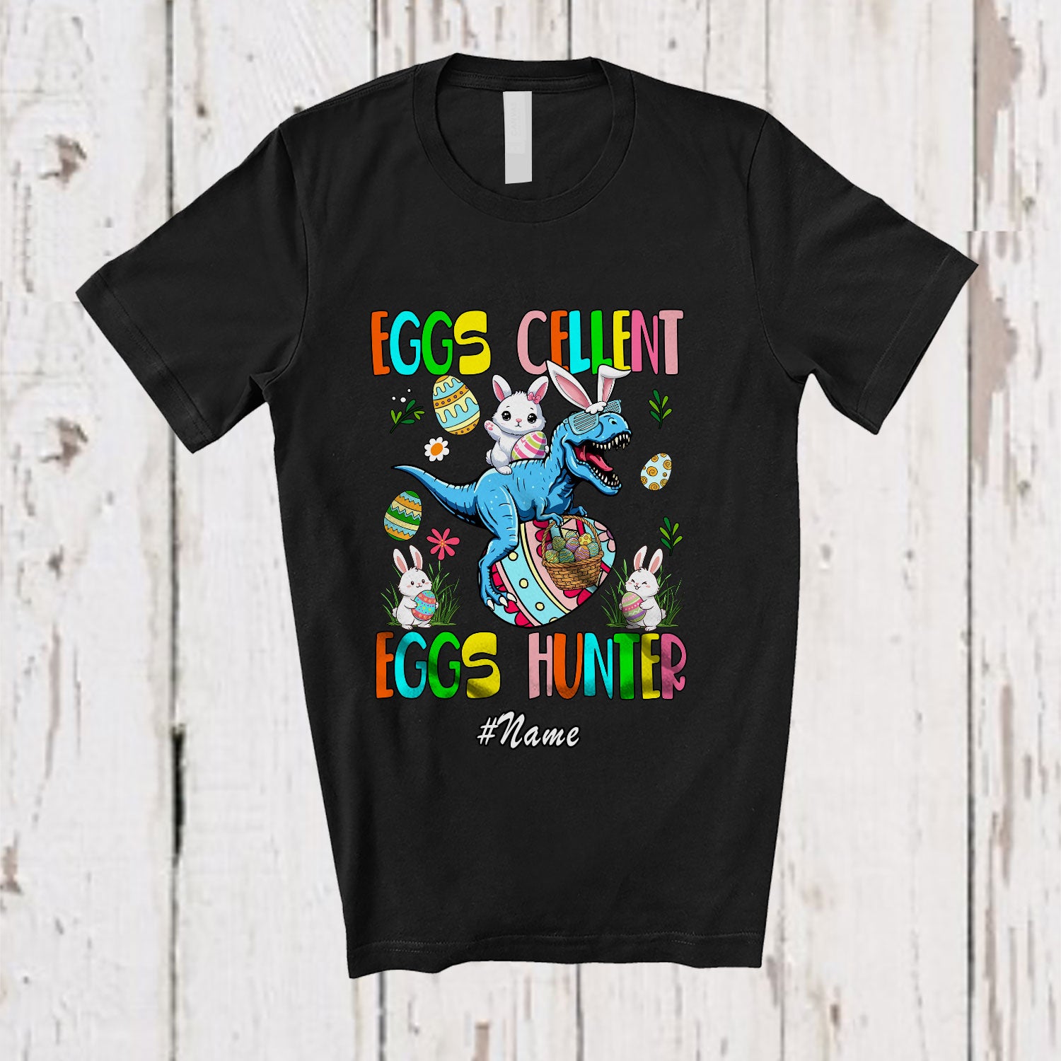 Personalized Custom Name Eggs Cellent Eggs Hunter; Humorous Easter Excellent Bunny Riding T-Rex T-Shirt