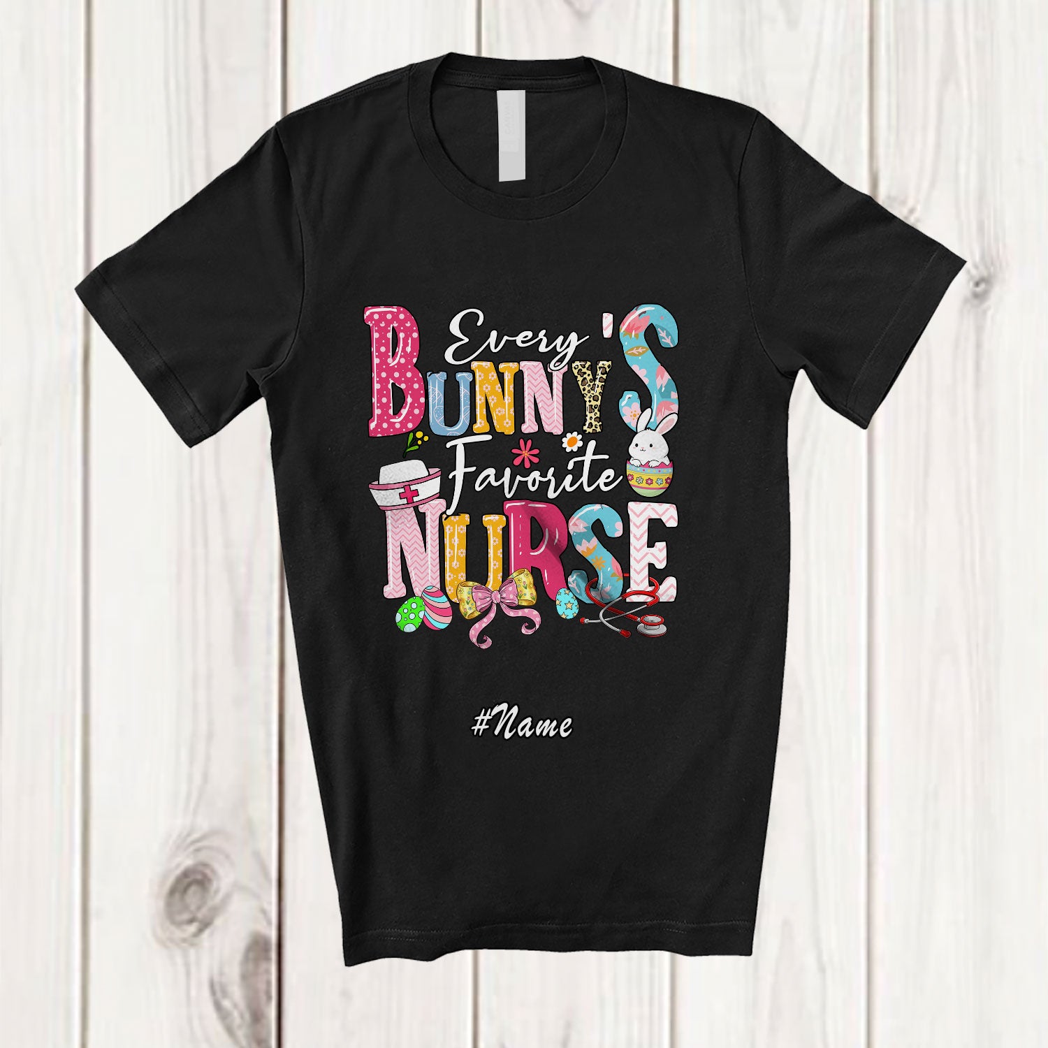Personalized Custom Name Every Bunny's Favorite Nurse; Lovely Easter Leopard Bunnies Eggs T-Shirt. This cotton t-shirt is a durable staple product with a classic fit. One of the most popular items, it has a relaxed style made for everyday and casual wear.