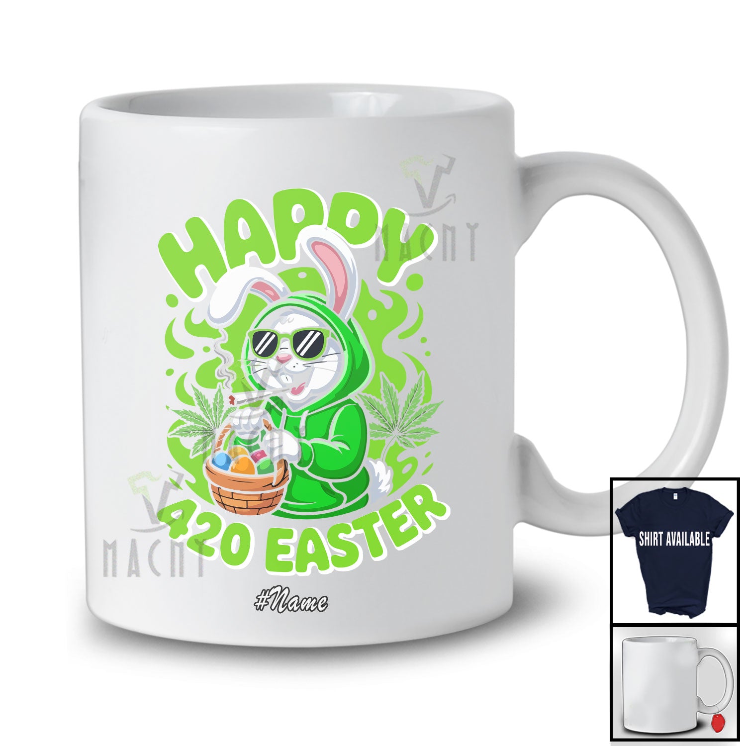 new MacnyStore - Personalized Custom Name Happy 420 Easter; Humorous Bunny With Eggs Basket; Smoking Smoker T-Shirt – Macnystore