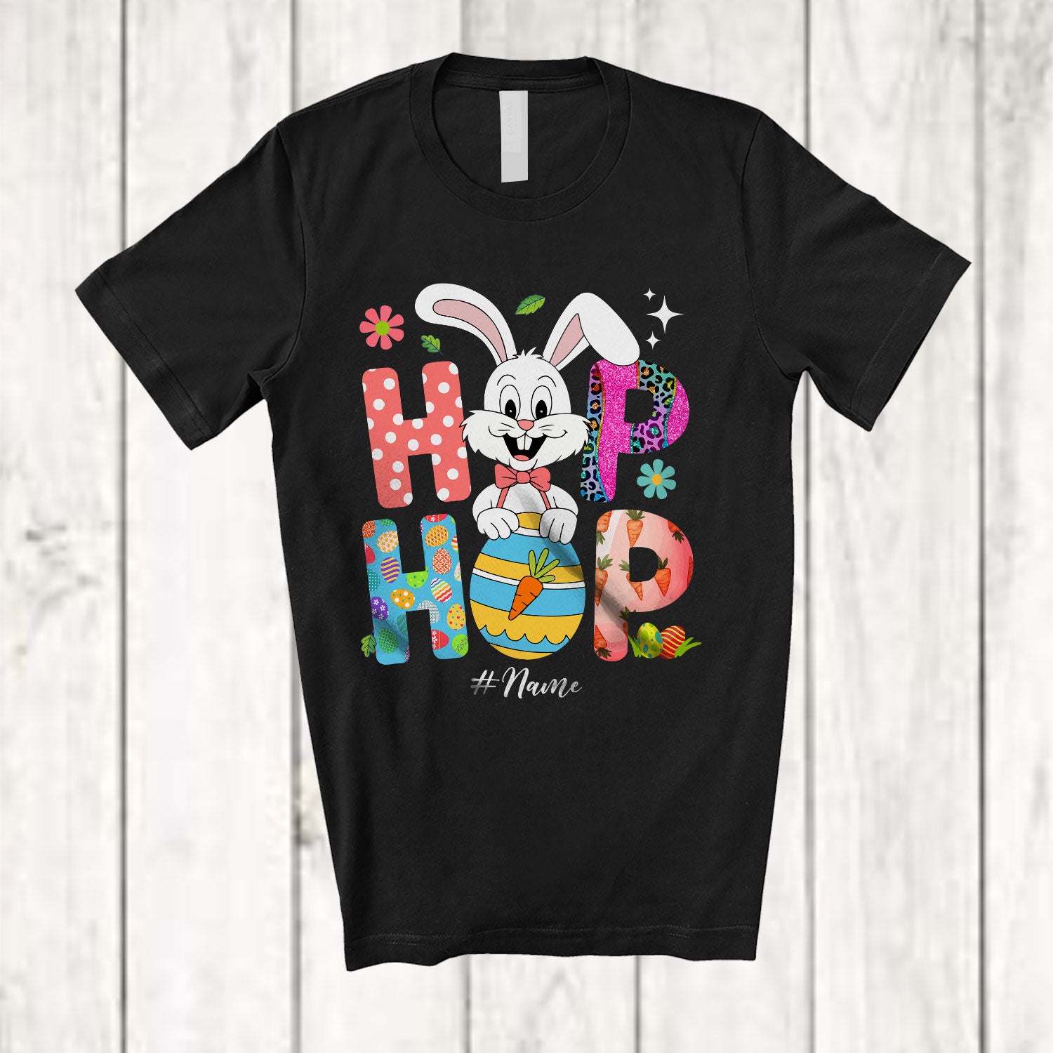 Personalized Custom Name Hip Hop; Amusing Easter Leopard Floral Bunny Hunting Egg Basket T-Shirt. This cotton t-shirt is a durable staple product with a classic fit. One of the most popular items, it has a relaxed style made for everyday and casual wear.