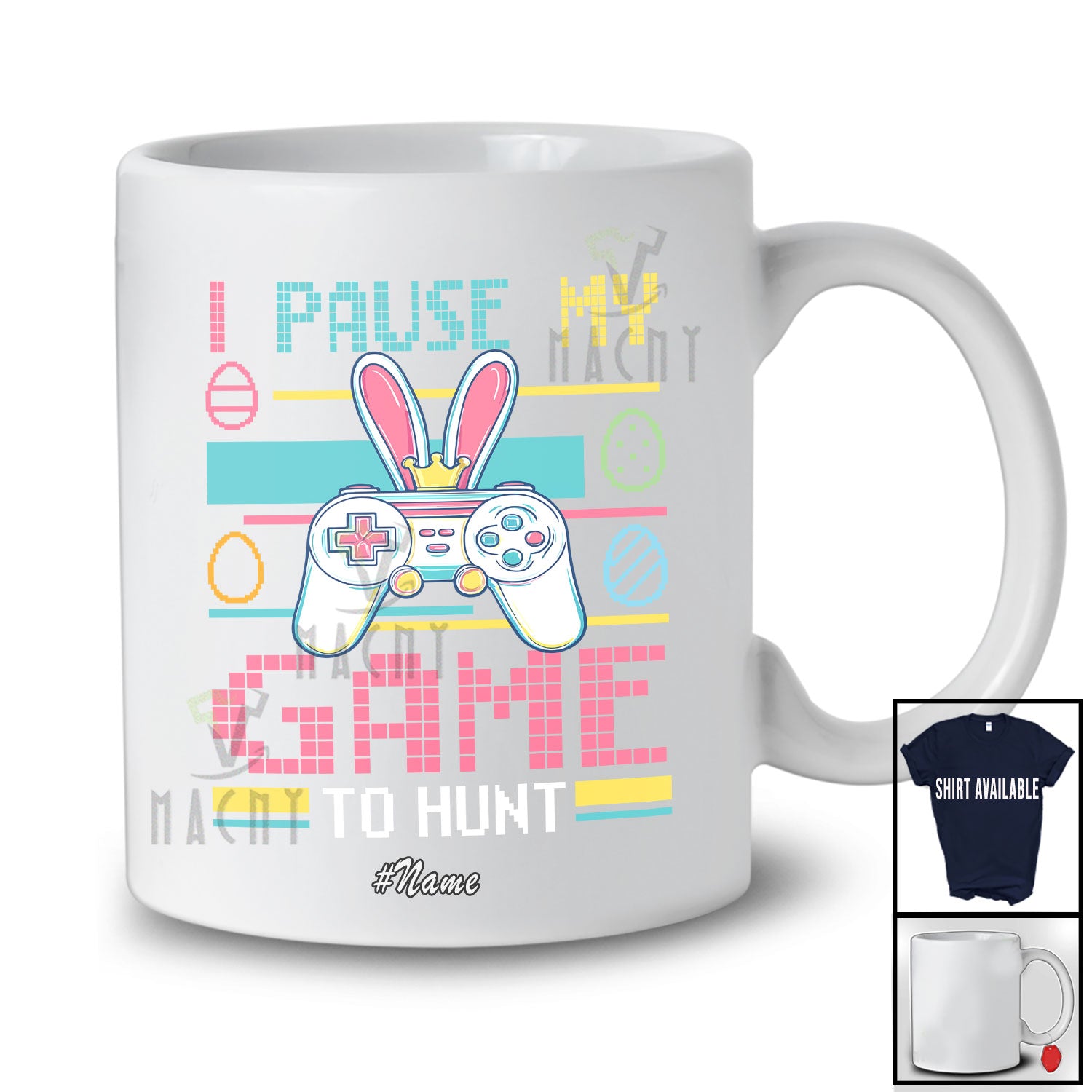Personalized Custom Name I Pause My Game To Hunt; Amusing Easter Video Game Bunny Gamer T-Shirt