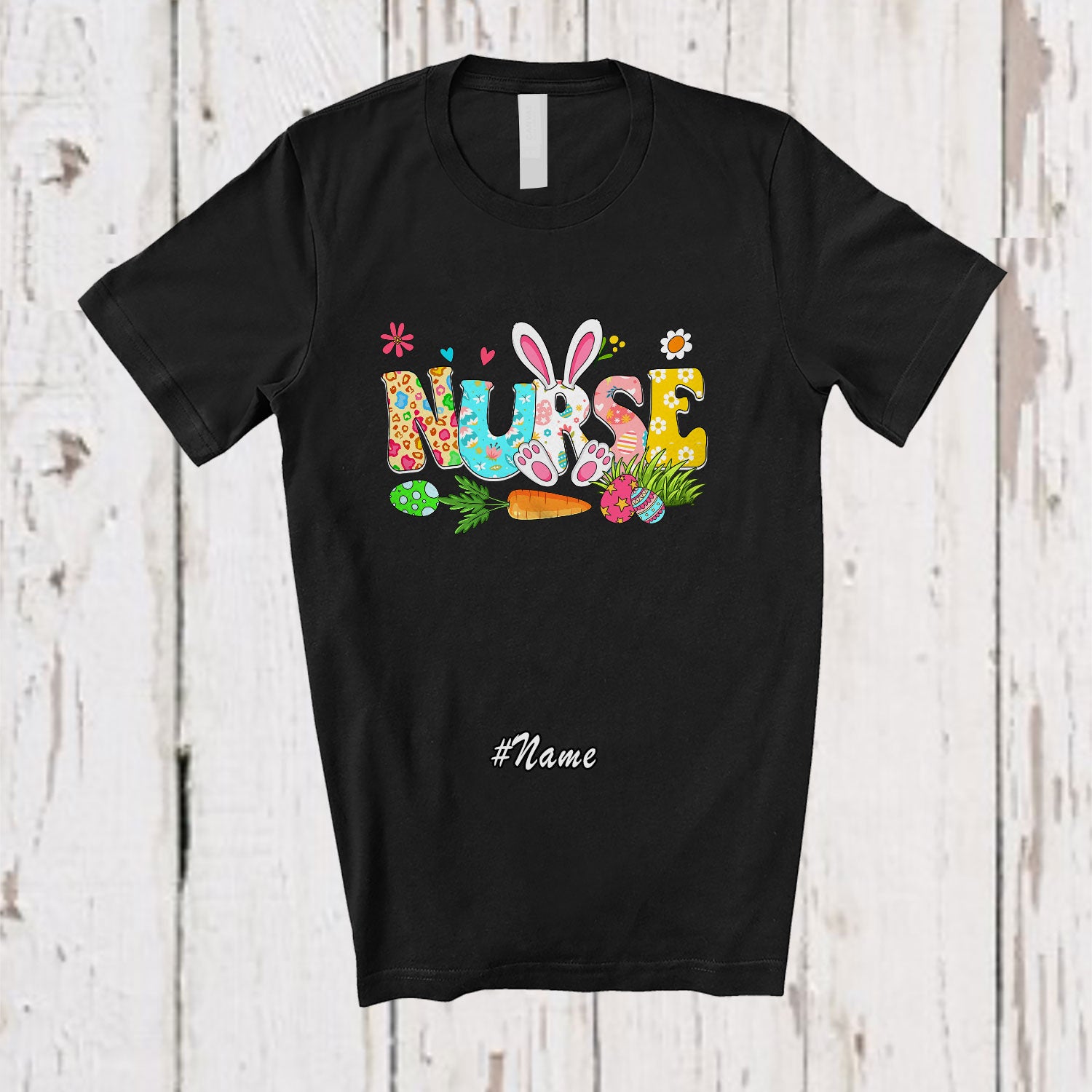 Personalized Custom Name Nurse; Adorable Easter Day Flowers Bunny Lover; Matching Jobs Proud T-Shirt