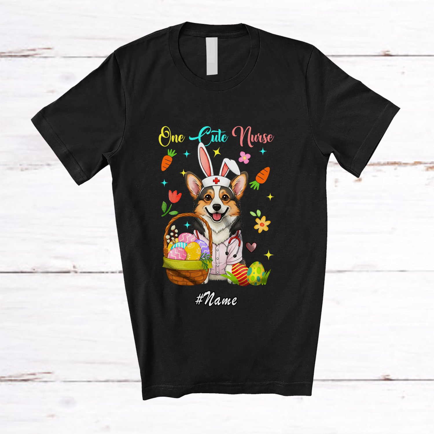 • Personalized Custom Name One Cute Nurse; Lovely Easter Bunny Corgi Owner; Eggs Hunting T-Shirt. This cotton t-shirt is a durable staple product with a classic fit. One of the most popular items, it has a relaxed style made for everyday and casual wear.