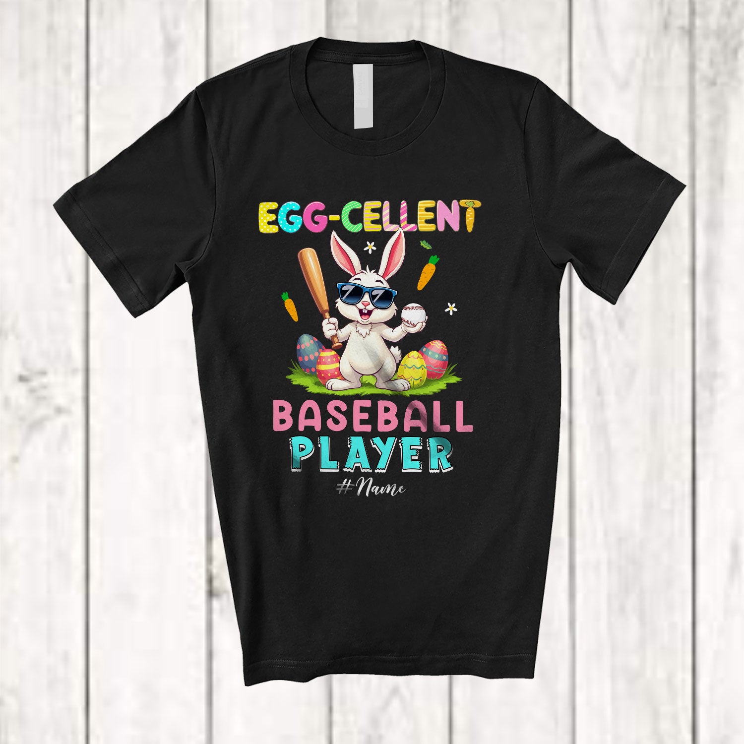 new MacnyStore - Personalized Egg-cellent Baseball Player; Lovely Easter Bunny Eggs Excellent; Custom Name Sport T-Shirt – Macnystore