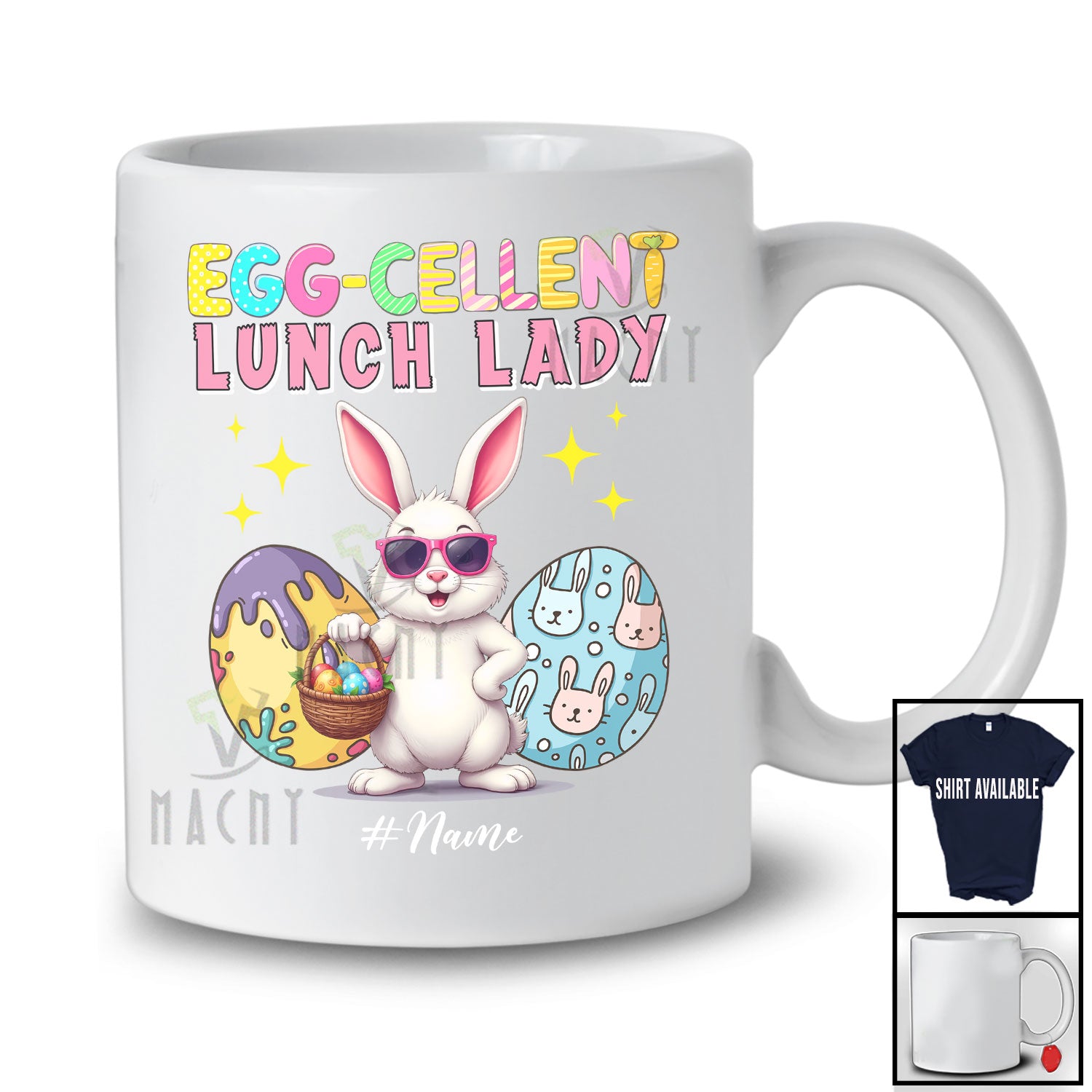 • Personalized Egg-cellent Lunch Lady; Lovely Easter Bunny Eggs Excellent; Custom Name Jobs T-Shirt. This cotton t-shirt is a durable staple product with a classic fit. One of the most popular items, it has a relaxed style made for everyday and casual wear.