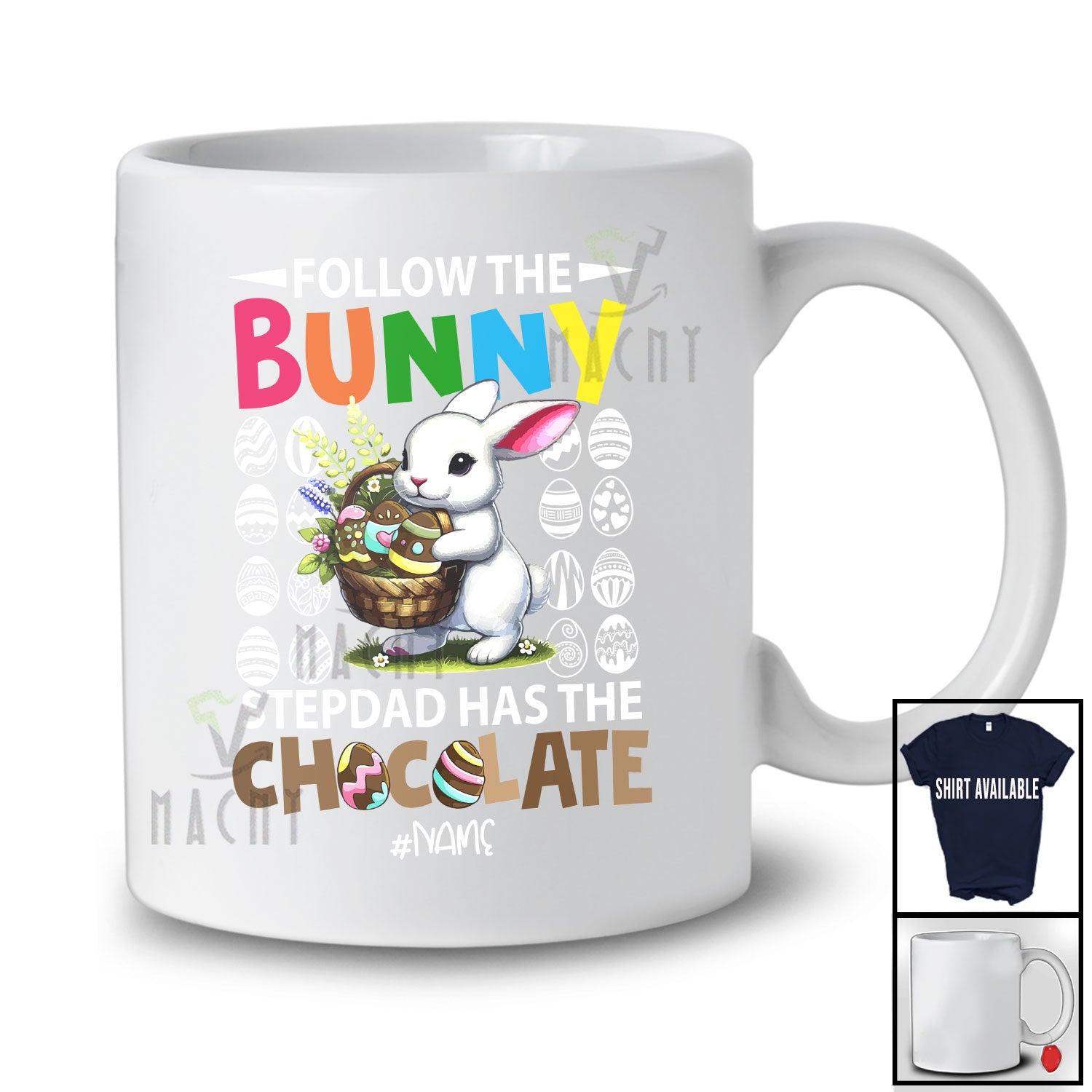 Personalized Follow The Bunny Stepdad Has The Chocolate; Lovely Easter Eggs; Custom Name Family T-Shirt
