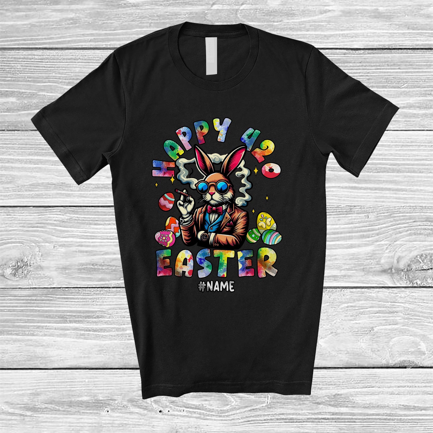 Personalized Happy 420 Easter; Humorous Easter Eggs Smoking Smoker; Custom Name Family T-Shirt