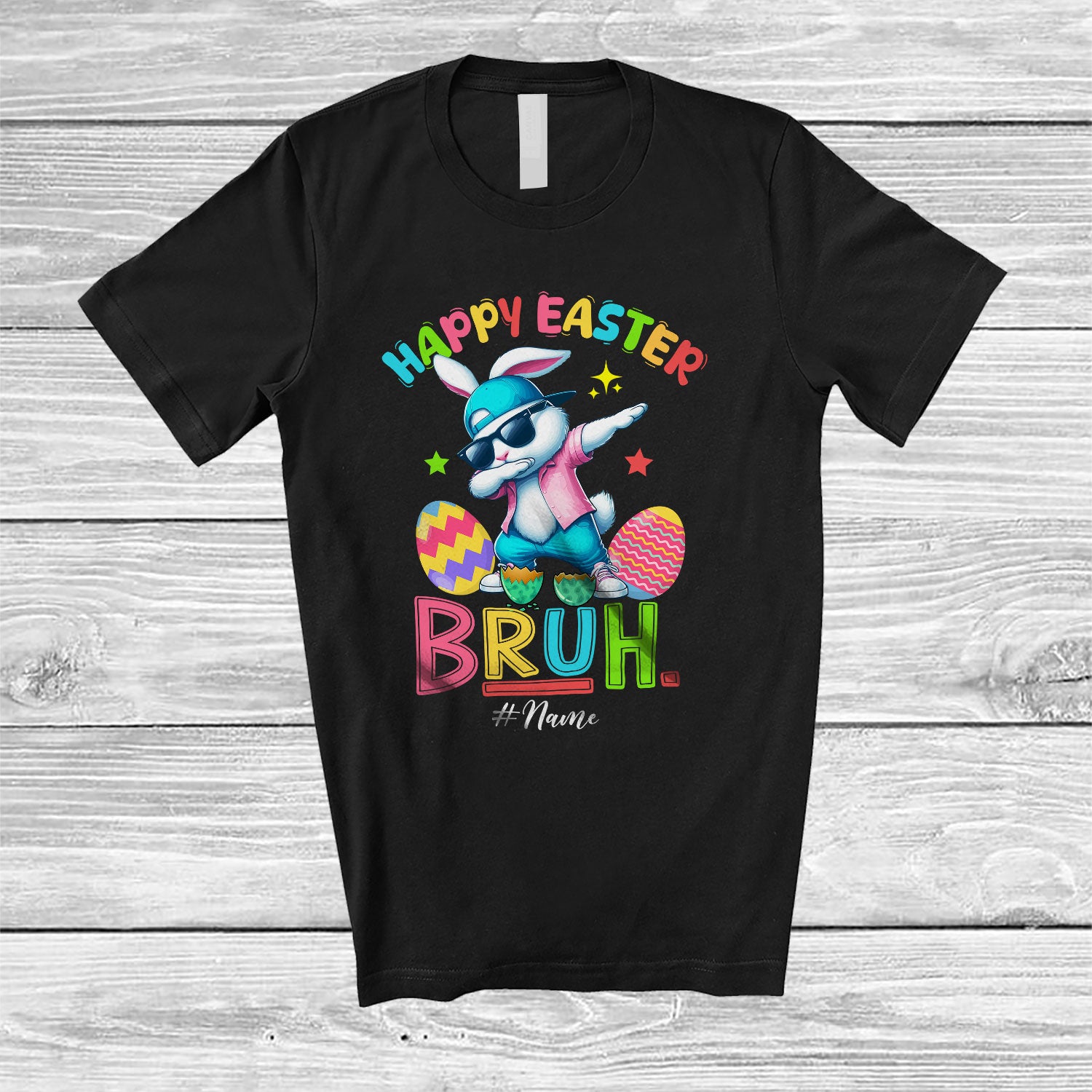 The Personalized Happy Easter Bruh; Lovely Easter Dabbing Bunny Stylist; Custom Name Eggs Hunt T-Shirt destined to impress, and priced at only $12.95, for a limited time.