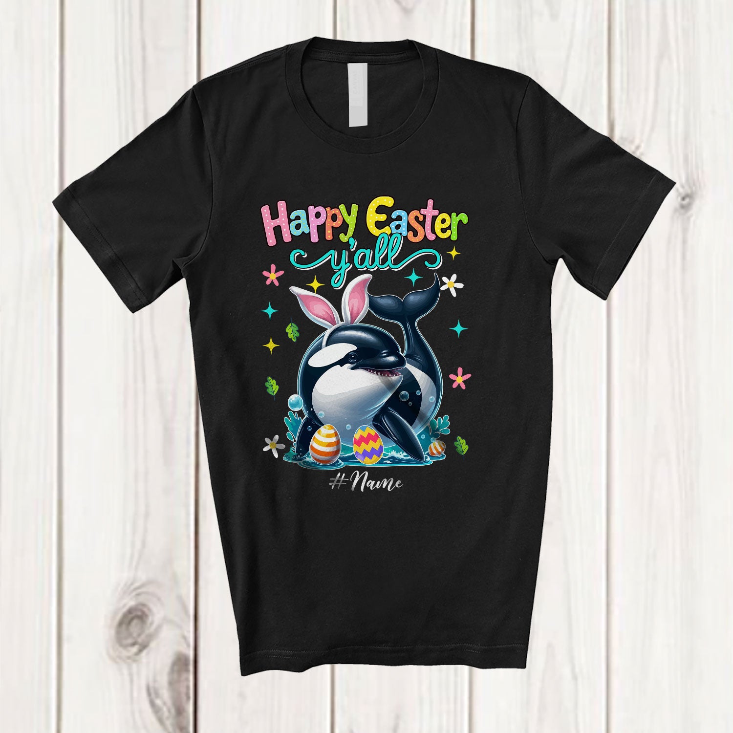 Personalized Happy Easter Y'all; Adorable Custom Name Bunny Orca Hunting Eggs; Sea Animal T-Shirt