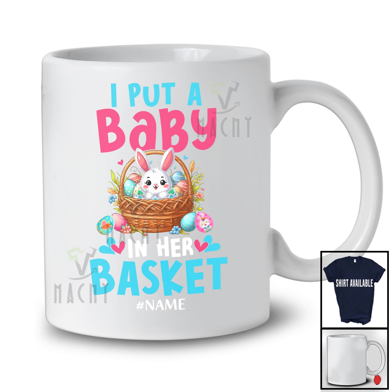 This Personalized I Put A Baby In Her Basket; Lovely Pregnancy Easter Custom Name Bunny In Egg Basket T-Shirt is great idea gift for your family, friends in this birthday, christmas, mother's day, father's day, patrick's day or any holiday.