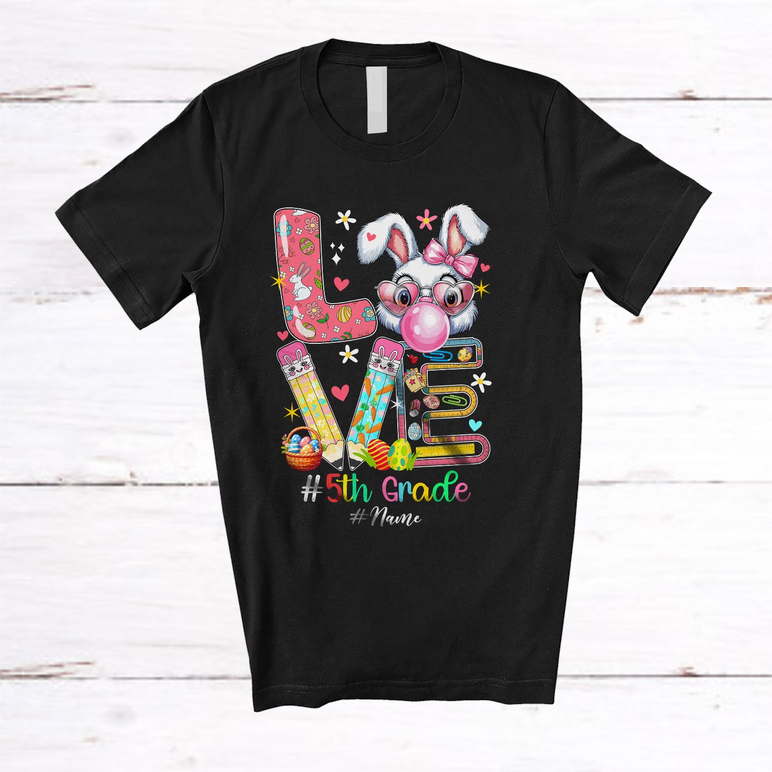 Personalized LOVE 5th Grade; Lovely Easter Bunny Face; Custom Name Students Teacher T-Shirt