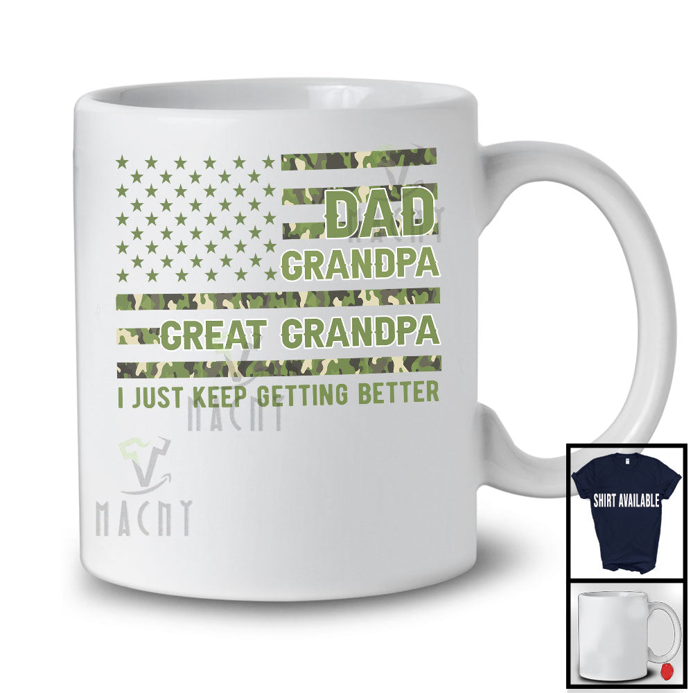 Dad Grandpa Great Grandpa Getting Better, Proud Father's Day Veteran Military, USA Flag Family T-Shirt