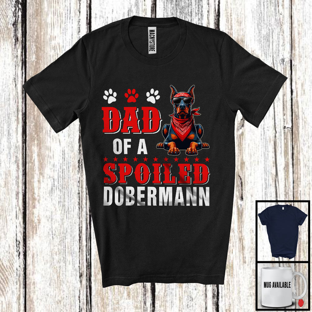 Dad Of A Spoiled Dobermann, Awesome Father's Day Puppy Sunglasses, Matching Family Group T-Shirt. This cotton t-shirt is a durable staple product with a classic fit. One of the most popular items, it has a relaxed style made for everyday and casual wear.