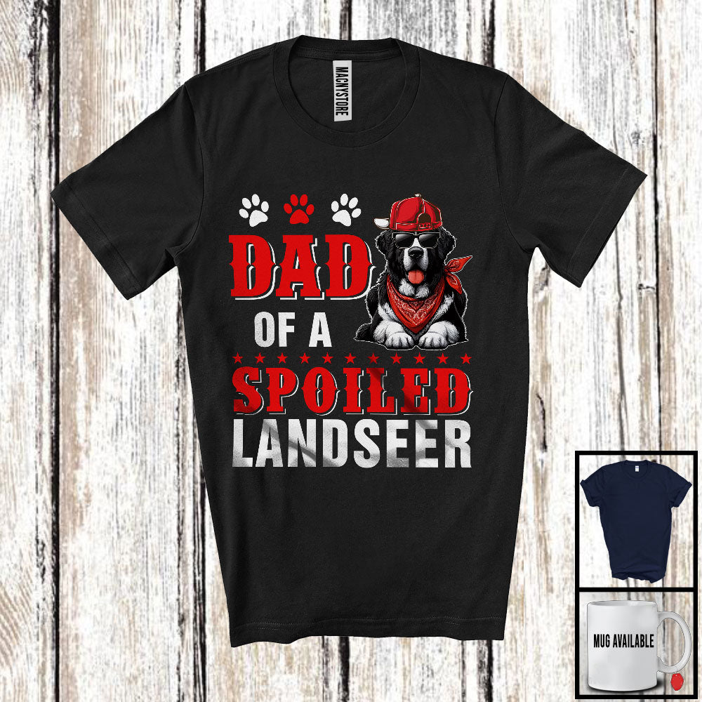 Dad Of A Spoiled Landseer, Awesome Father's Day Puppy Sunglasses, Matching Family Group T-Shirt. This cotton t-shirt is a durable staple product with a classic fit. One of the most popular items, it has a relaxed style made for everyday and casual wear.
