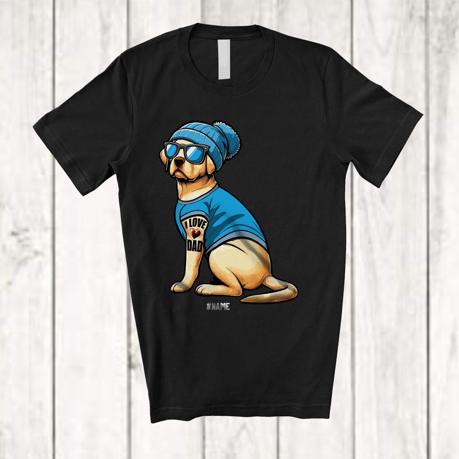 Personalized Custom Name Labrador Retriever I Love Dad; Lovely Father's Day Tattooed on Hand T-Shirt. This cotton t-shirt is a durable staple product with a classic fit. One of the most popular items, it has a relaxed style made for everyday and casual wear.