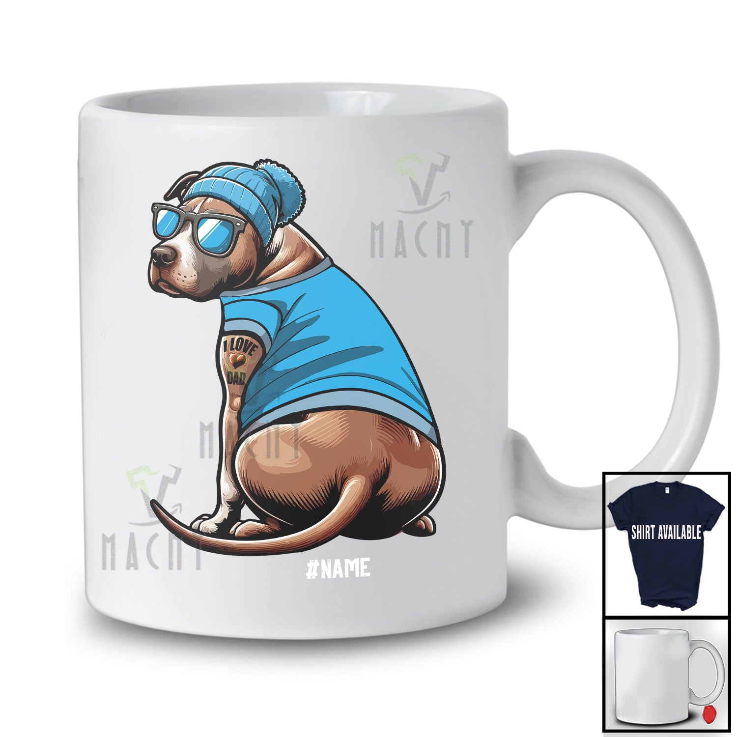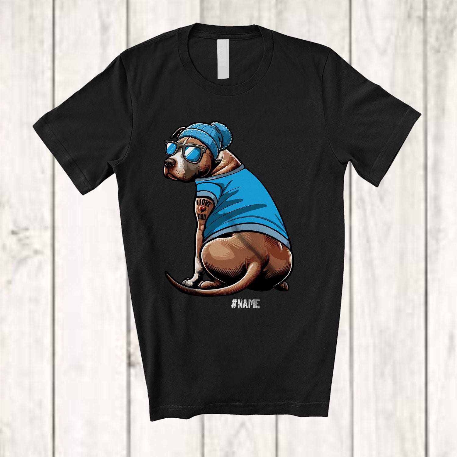 The Personalized Custom Name Pit Bull I Love Dad; Lovely Father's Day Pit bull Tattooed on Hand T-Shirt destined to impress, and priced at only $12.95, for a limited time.