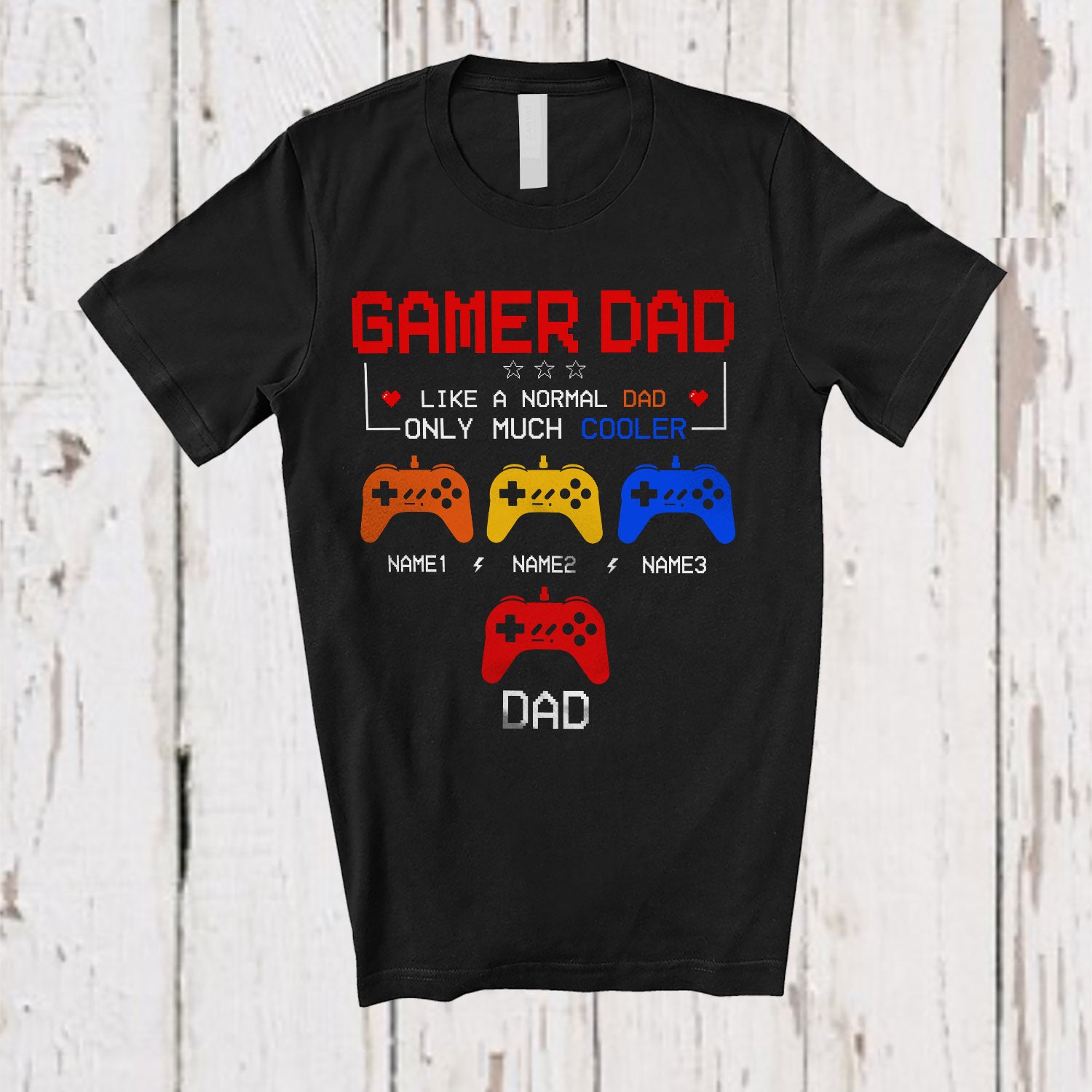Personalized Gamer Dad Much Cooler; Amazing Father's Day Custom Name Son Daughter Gaming T-Shirt. This cotton t-shirt is a durable staple product with a classic fit. One of the most popular items, it has a relaxed style made for everyday and casual wear.