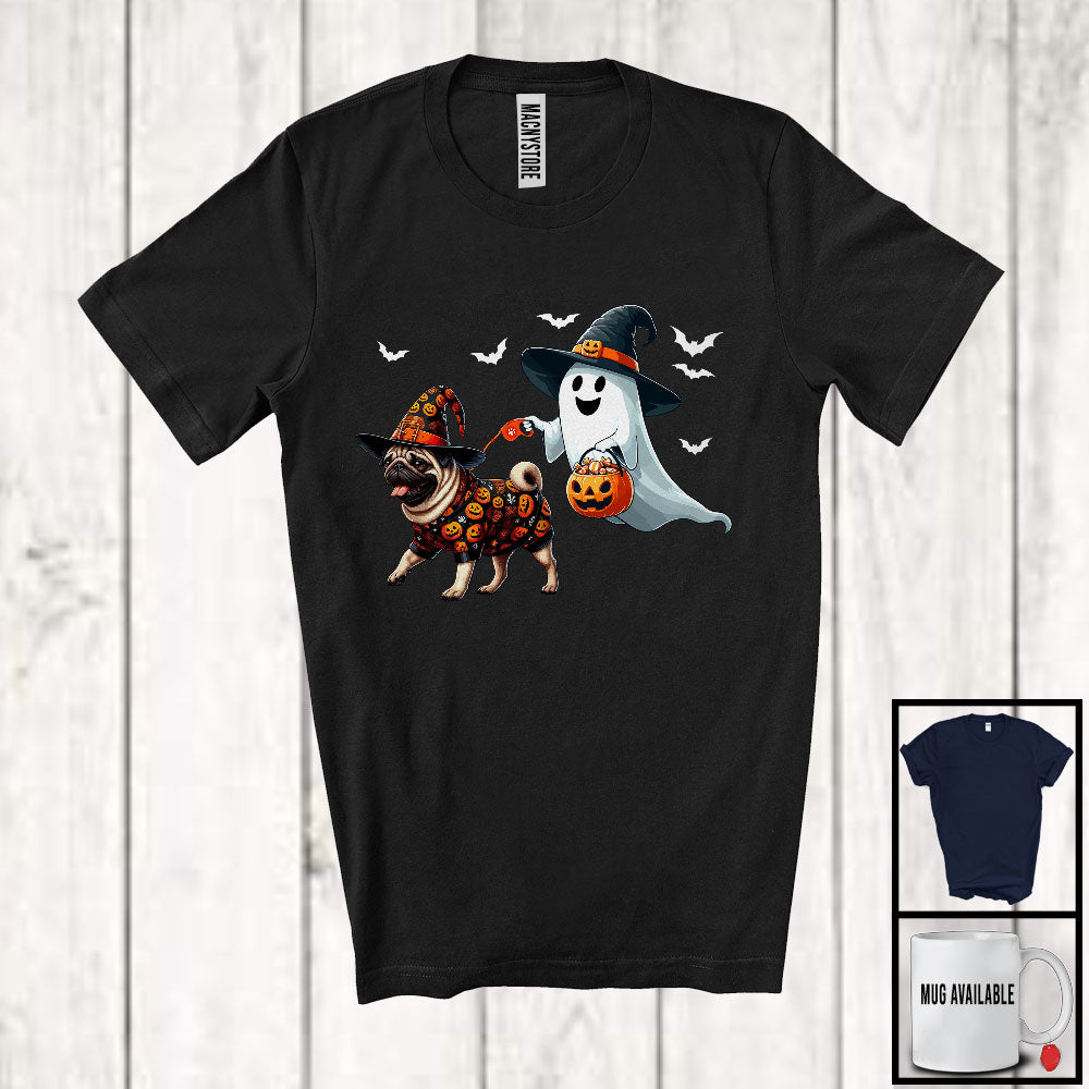new MacnyStore - Boo Walking With Pug; Lovely Halloween Costume Witch Ghost; Family Group T-Shirt – Macnystore