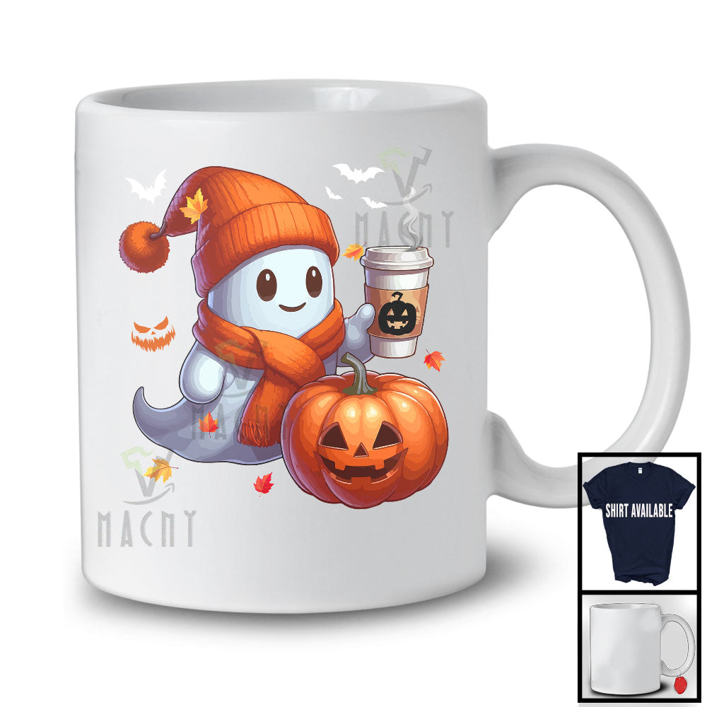 Cute Ghost Drinking Coffee; Adorable Halloween Costume Coffee Lover; Matching Family Group T-Shirt