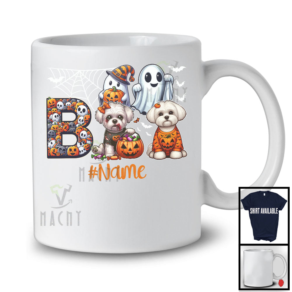 Personalized Custom Name Boo Horror Maltese, Scary Halloween Costume Ghost Pumpkins T-Shirt. This cotton t-shirt is a durable staple product with a classic fit. One of the most popular items, it has a relaxed style made for everyday and casual wear.