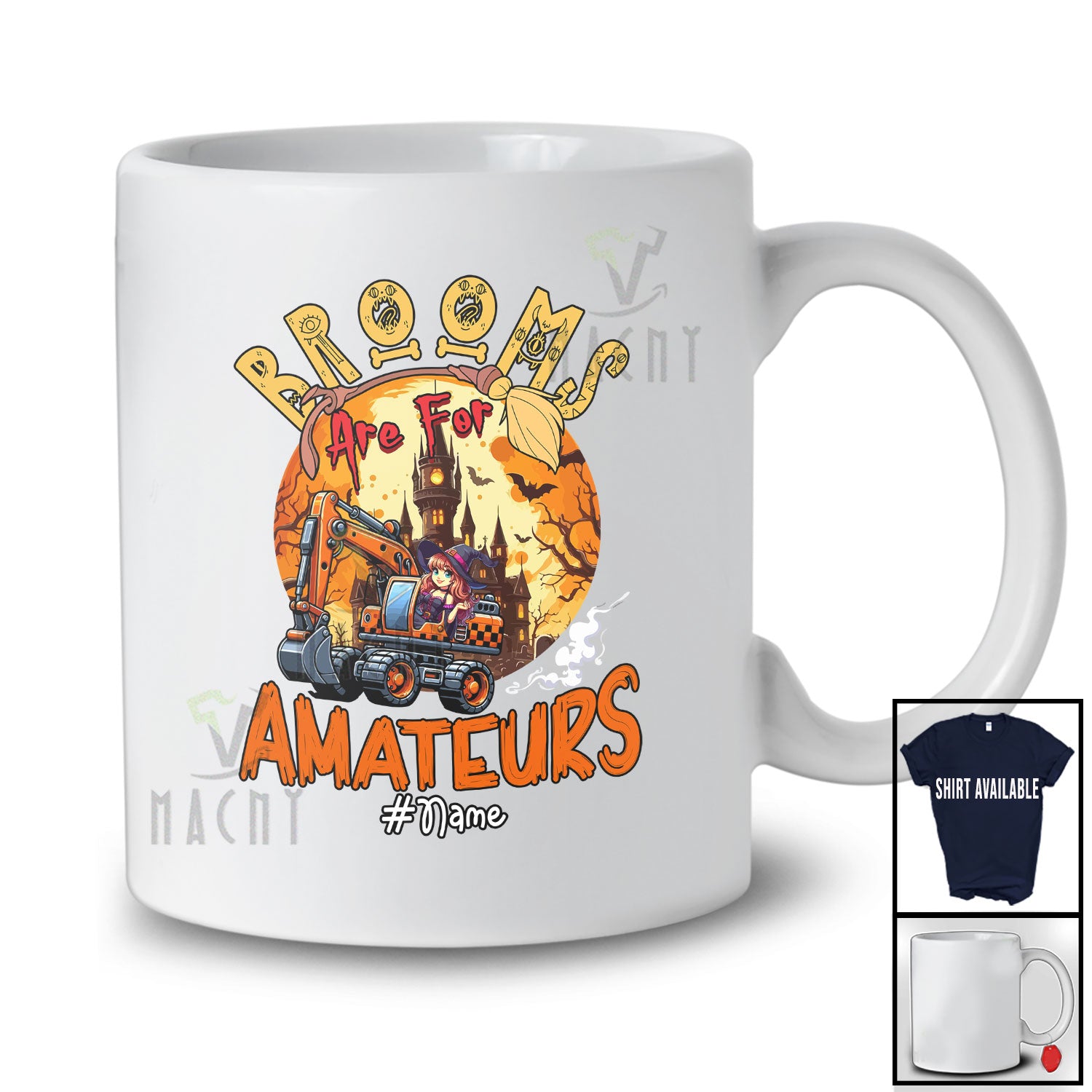 This Personalized Custom Name Brooms For Amateurs; Scary Halloween Moon Riding Excavator Witch T-Shirt is great idea gift for your family, friends in this birthday, christmas, mother's day, father's day, patrick's day or any holiday.