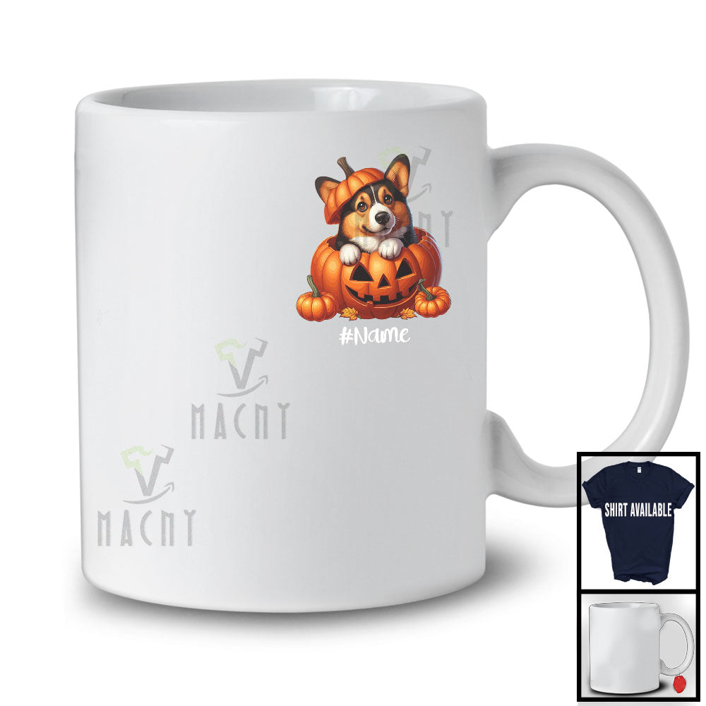 • Personalized Custom Name Corgi In Pumpkin Pocket; Lovely Thanksgiving Halloween T-Shirt. This cotton t-shirt is a durable staple product with a classic fit. One of the most popular items, it has a relaxed style made for everyday and casual wear.