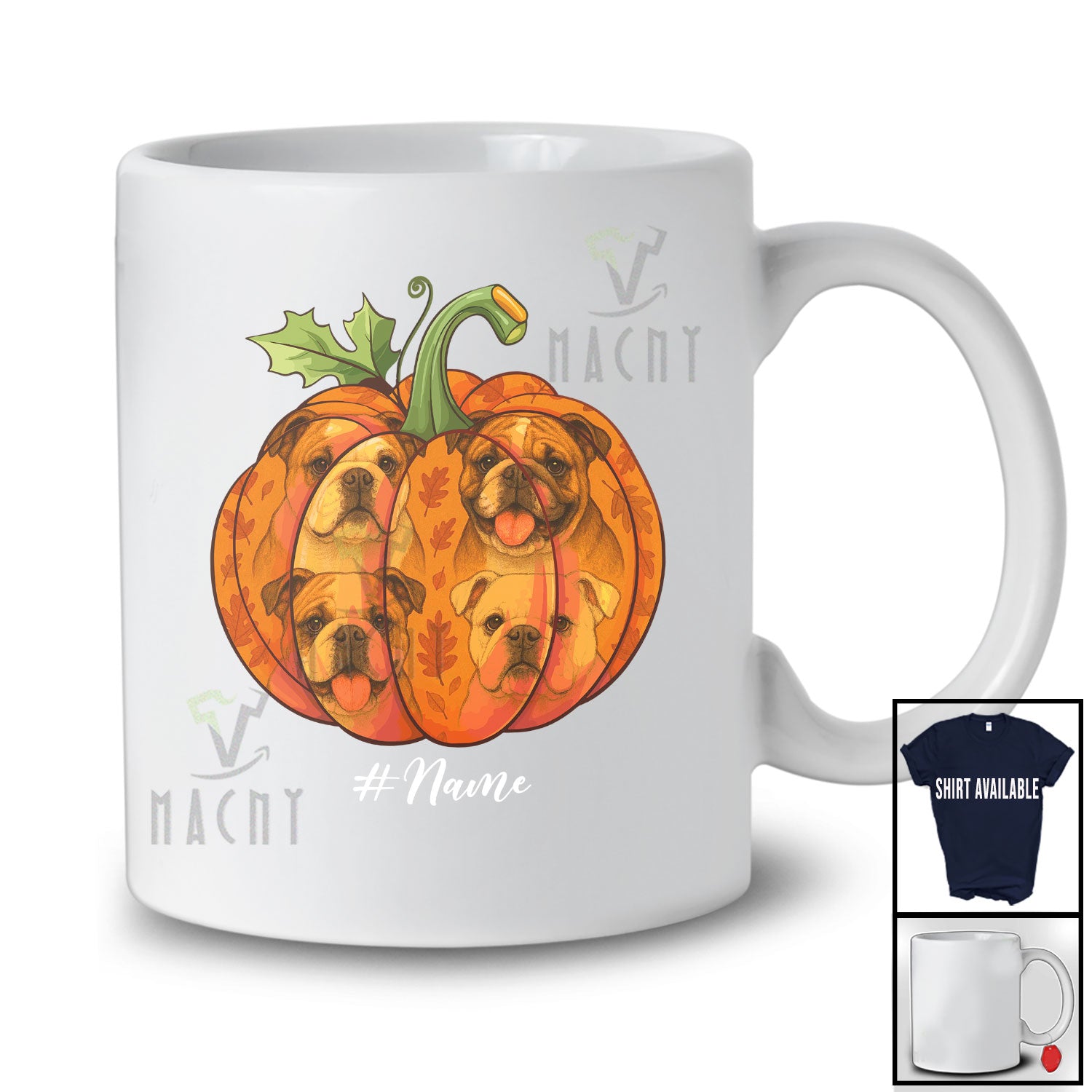 new MacnyStore - Personalized Custom Name Fall Bulldog Pumpkin; Happy Thanksgiving Halloween Family T-Shirt – Macnystore