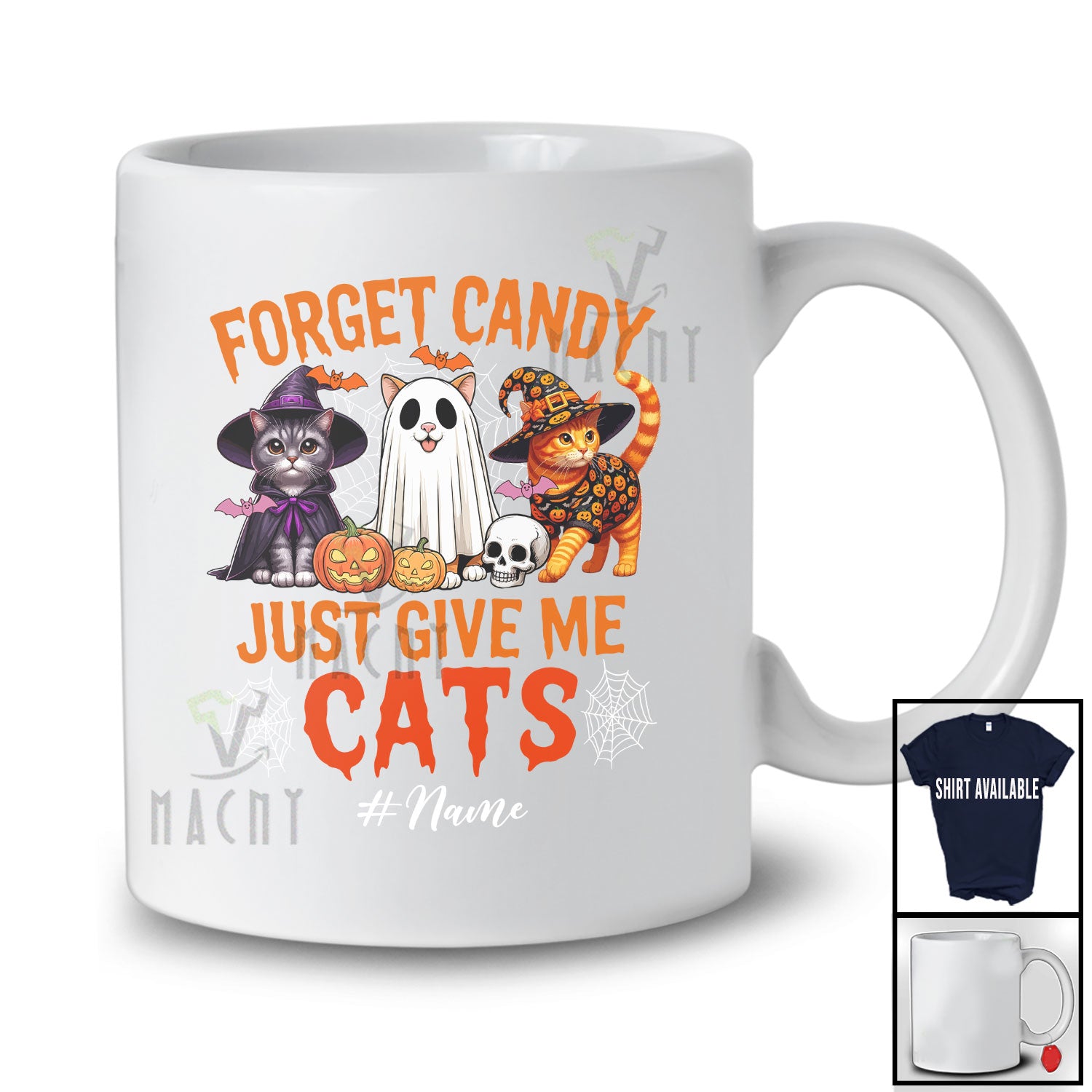 The Personalized Custom Name Forget Candy Give Me Cats; Lovely Halloween Three Cat Boo Witch T-Shirt destined to impress, and priced at only $12.95, for a limited time.