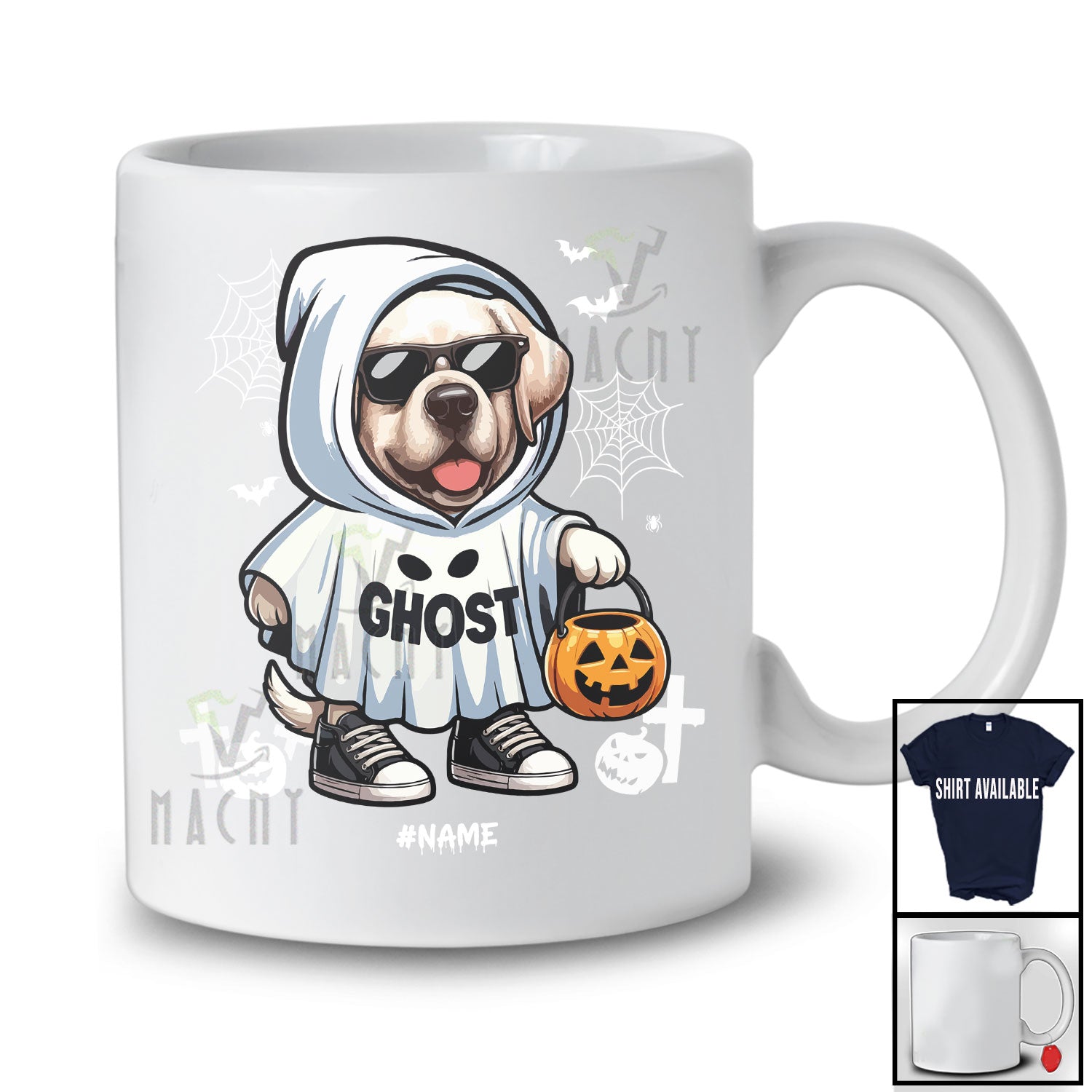 new MacnyStore - Personalized Custom Name Labrador Retriever Boo Ghost Cosplay; Lovely Halloween Animal Sunglasses T-Shirt – Macnystore