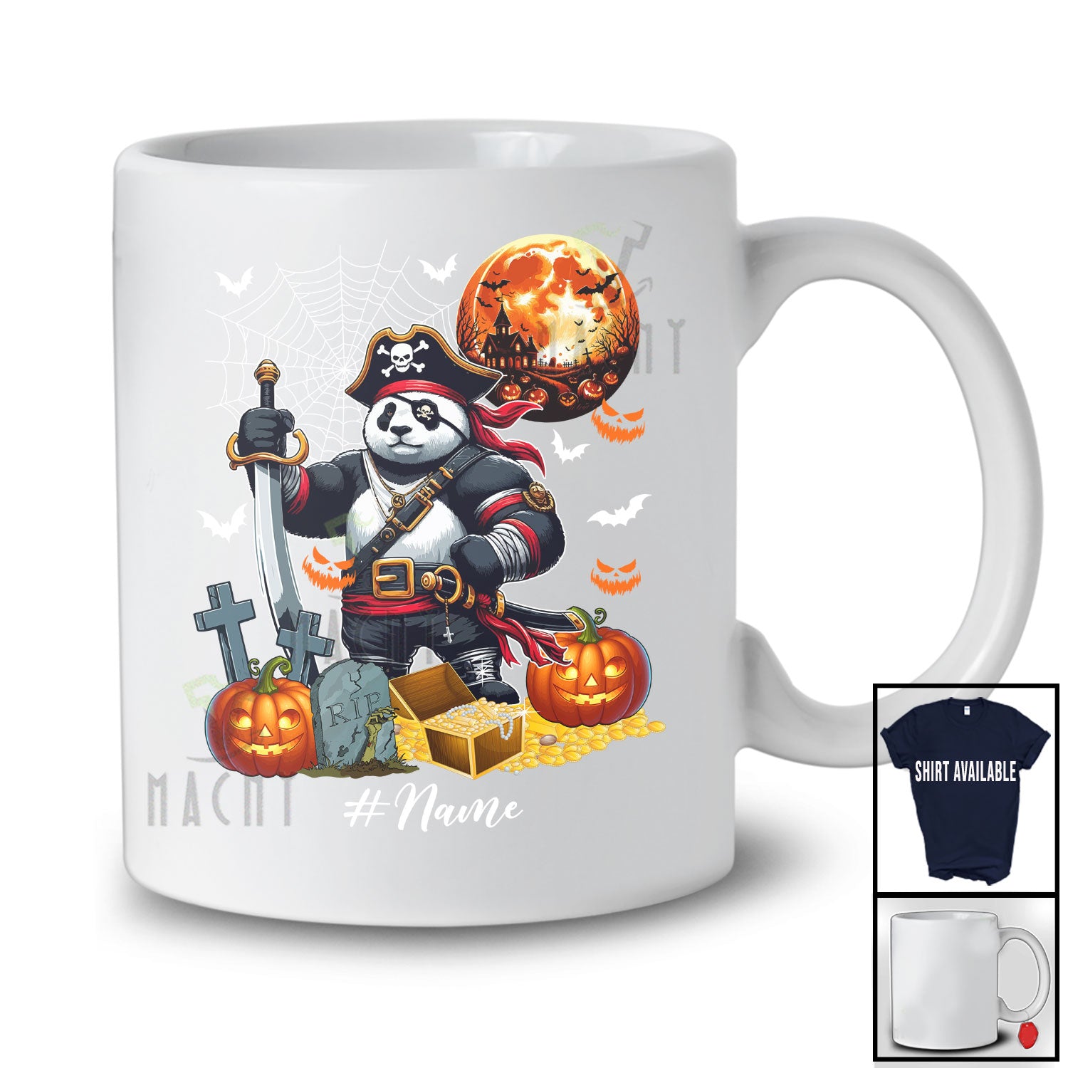 • Personalized Custom Name Panda Pirate; Lovely Halloween Panda Wild Animal Pumpkin T-Shirt. This cotton t-shirt is a durable staple product with a classic fit. One of the most popular items, it has a relaxed style made for everyday and casual wear.