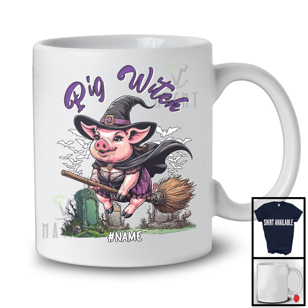 Personalized Custom Name Pig Witch, Adorable Halloween Pig With Broom, Family Group T-Shirt