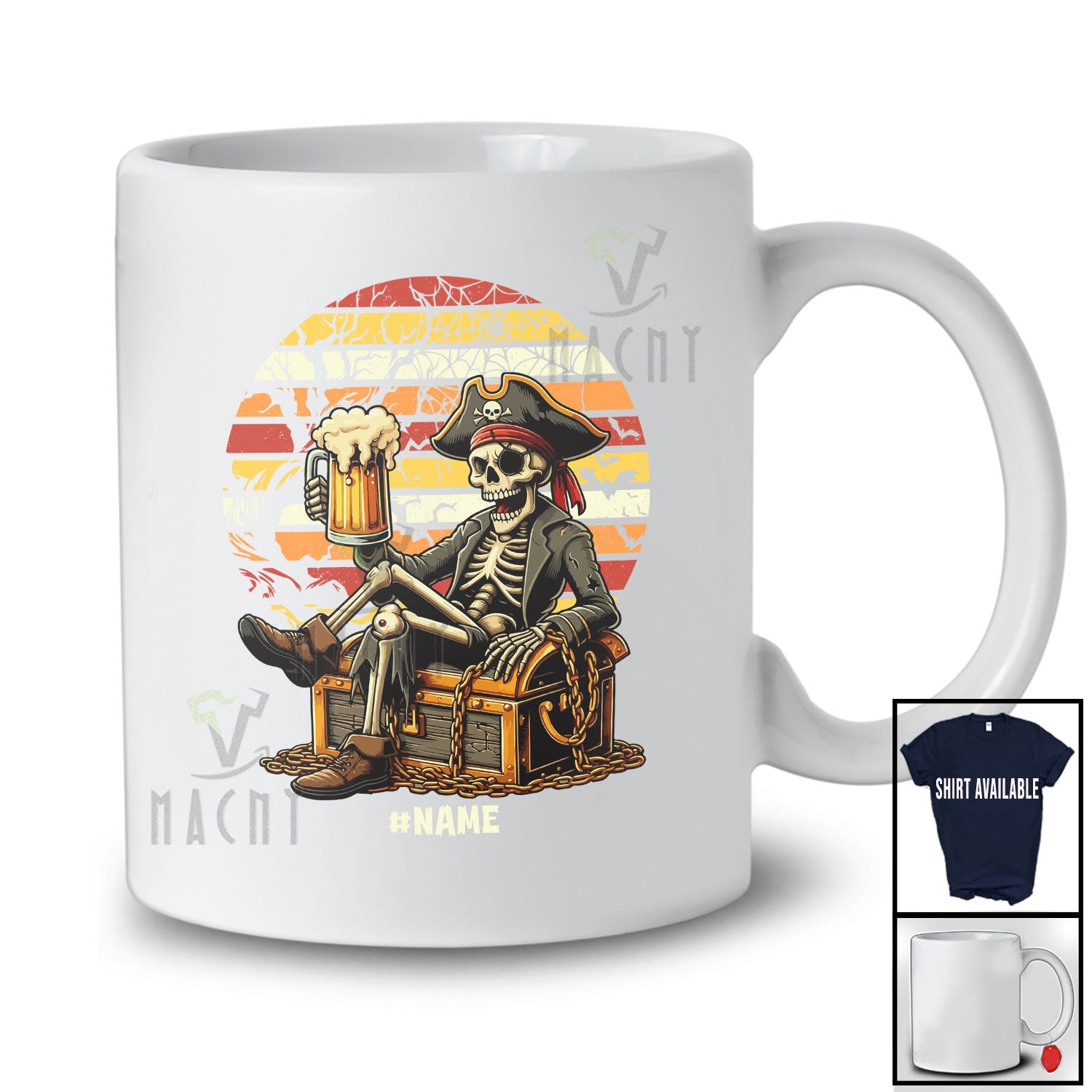 This Personalized Custom Name Pirate Skeleton Drinking Beer; Horror Halloween Drunker Retro T-Shirt is great idea gift for your family, friends in this birthday, christmas, mother's day, father's day, patrick's day or any holiday.