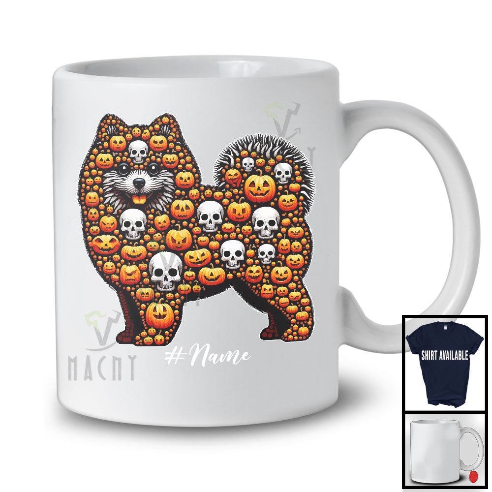 Personalized Custom Name Pomeranian Skull Pumpkin Shape; Creepy Halloween Animal Lover T-Shirt