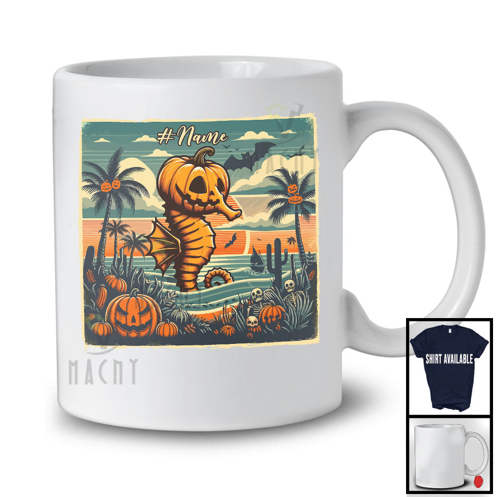 Personalized Custom Name Pumpkin Seahorse; Scary Halloween Costume Sea Animal Lover T-Shirt