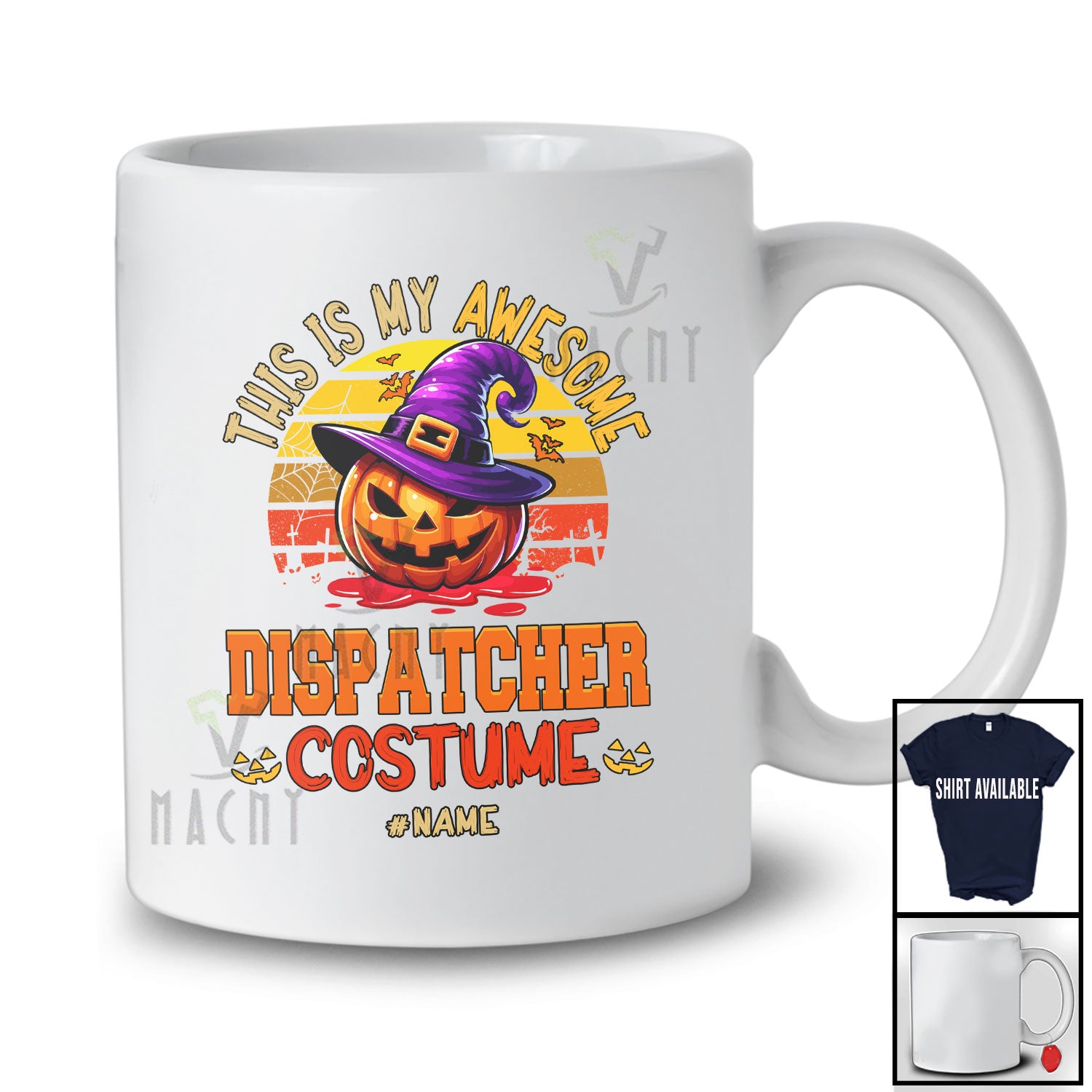 Personalized Custom Name Retro My Awesome Dispatcher Costume; Scary Halloween Pumpkin T-Shirt. This cotton t-shirt is a durable staple product with a classic fit. One of the most popular items, it has a relaxed style made for everyday and casual wear.