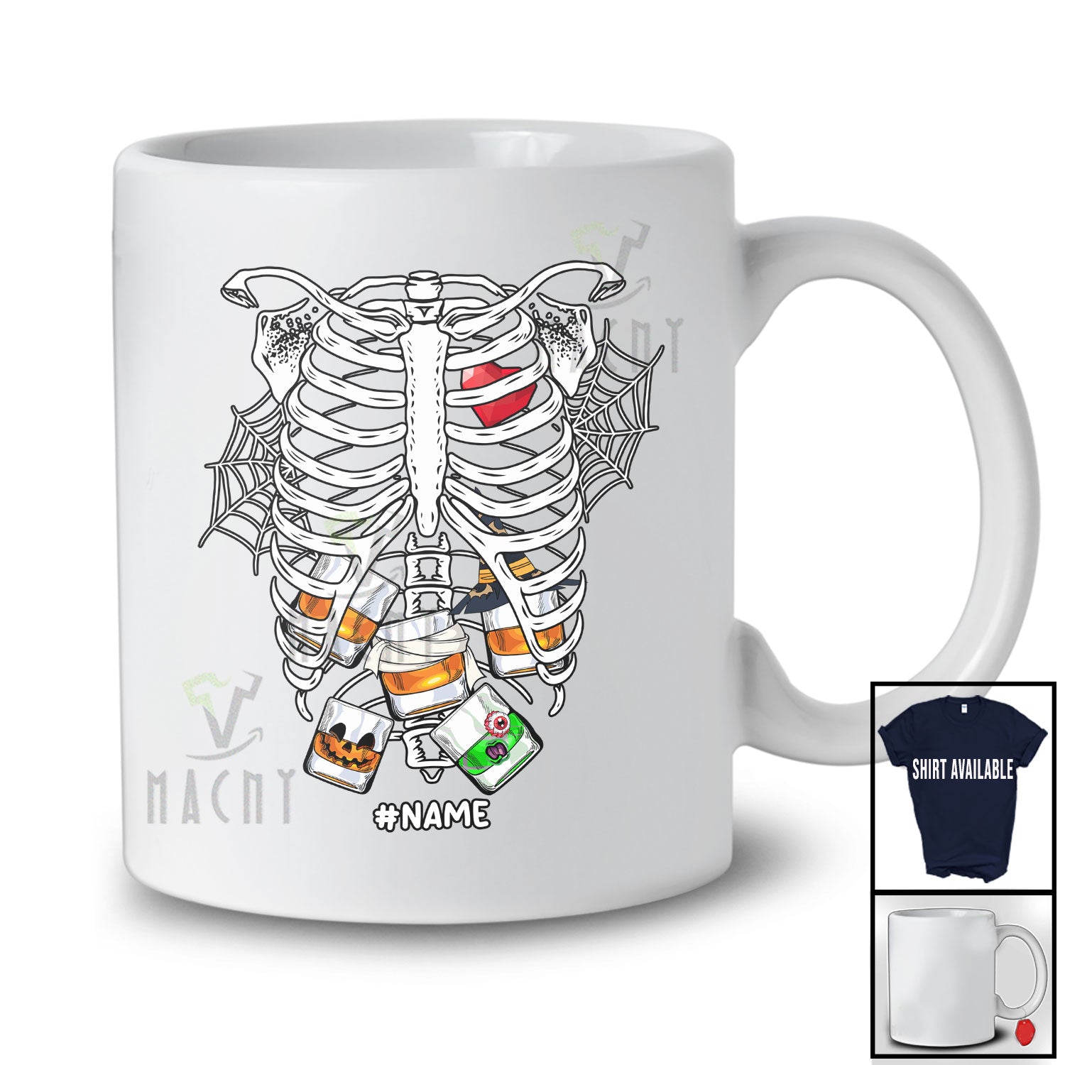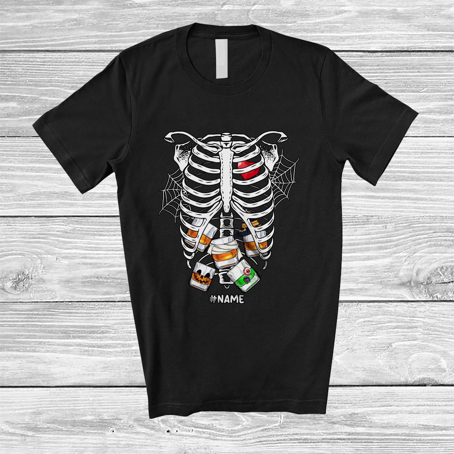 • Personalized Custom Name Skeleton Rib Cage With Rum Inside; Joyful Halloween X-Ray Drinking T-Shirt. This cotton t-shirt is a durable staple product with a classic fit. One of the most popular items, it has a relaxed style made for everyday and casual wear.