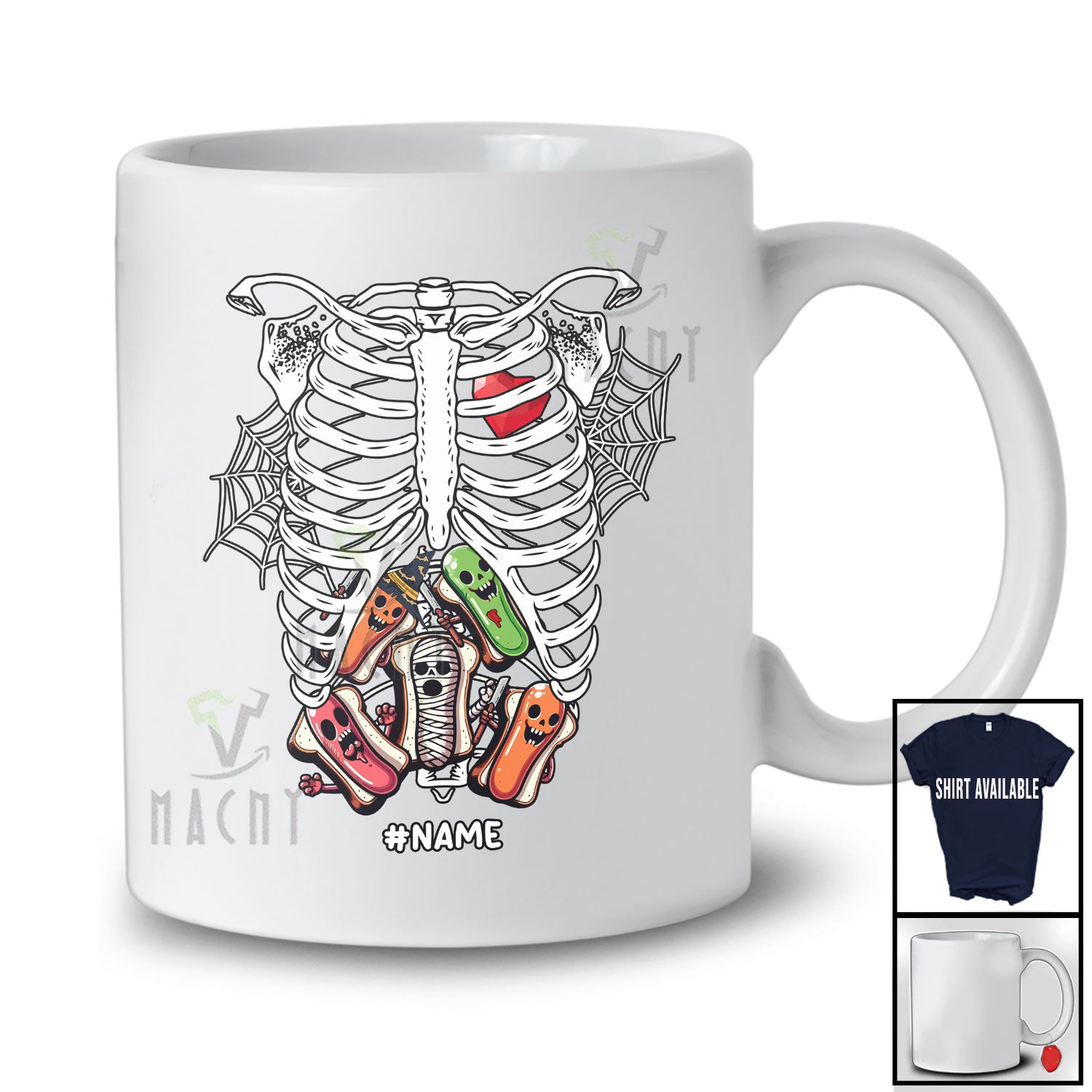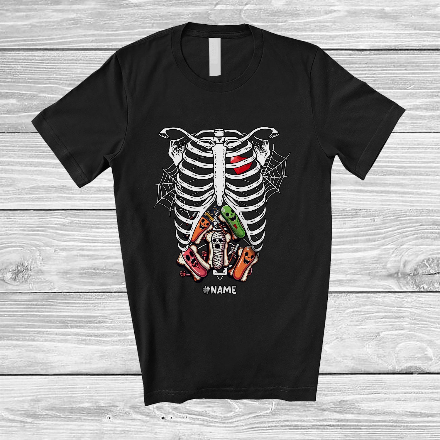 new MacnyStore - Personalized Custom Name Skeleton Rib Cage With Sausage Inside; Joyful Halloween X-Ray Food T-Shirt – Macnystore
