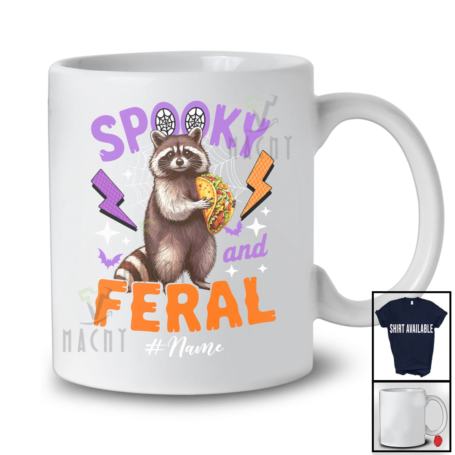 This Personalized Custom Name Spooky And Feral; Lovely Halloween Raccoon Raccoon Eating Taco T-Shirt is great idea gift for your family, friends in this birthday, christmas, mother's day, father's day, patrick's day or any holiday.