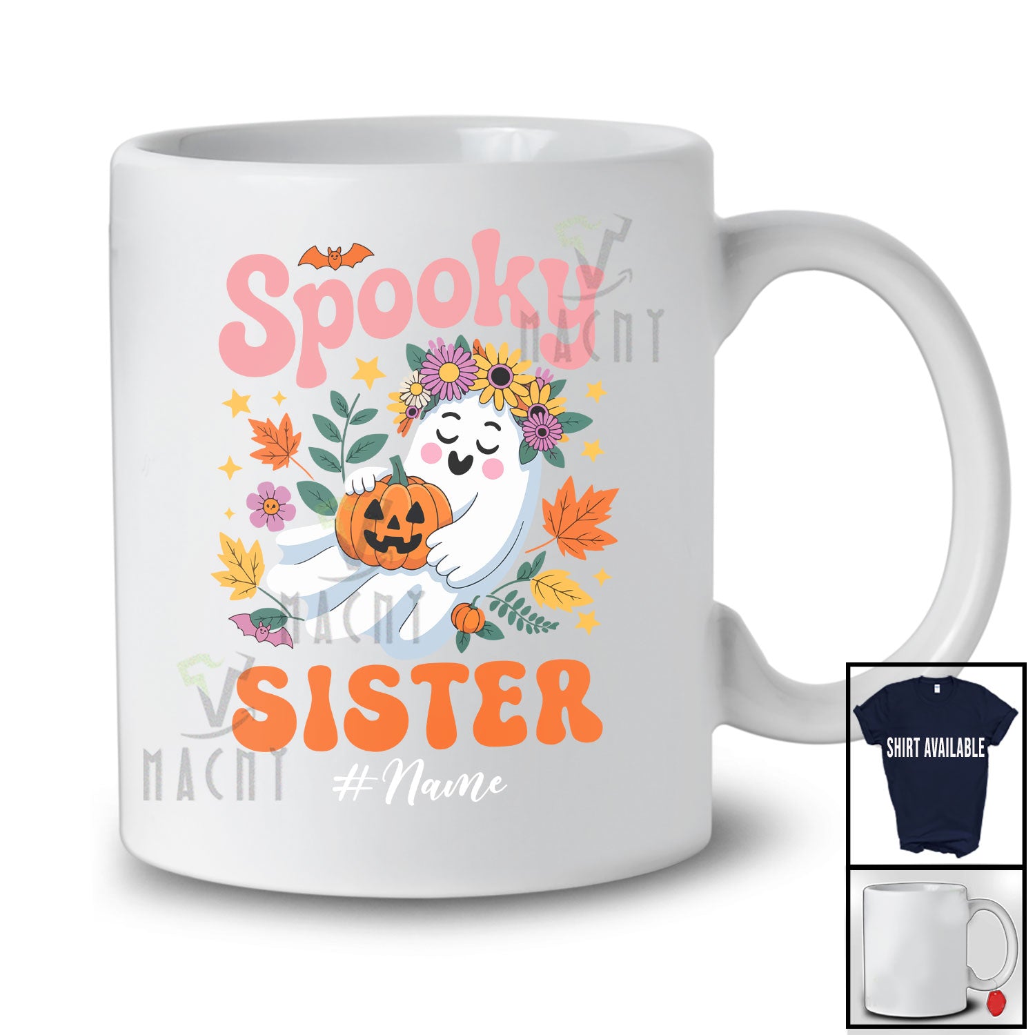 new MacnyStore - Personalized Custom Name Spooky Sister; Adorable Halloween Boo Ghost Flowers Floral; Family T-Shirt – Macnystore