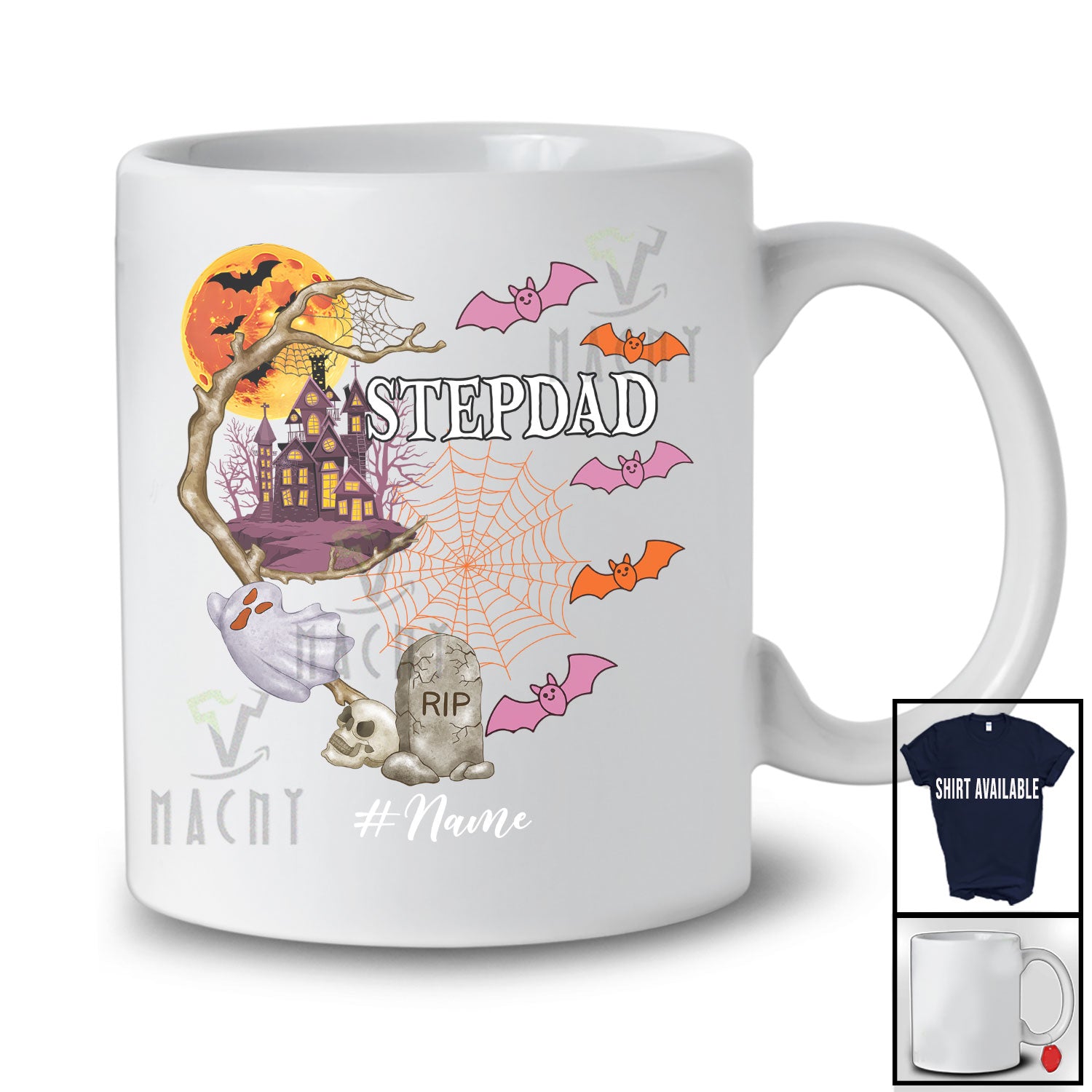 new MacnyStore - Personalized Custom Name Stepdad; Horror Halloween Costume Moon Boo Ghost; Family Group T-Shirt – Macnystore