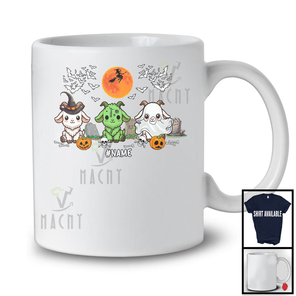 Personalized Custom Name Three Costume Goat; Creepy Halloween Witch Zombie Boo; Animal T-Shirt. This cotton t-shirt is a durable staple product with a classic fit. One of the most popular items, it has a relaxed style made for everyday and casual wear.