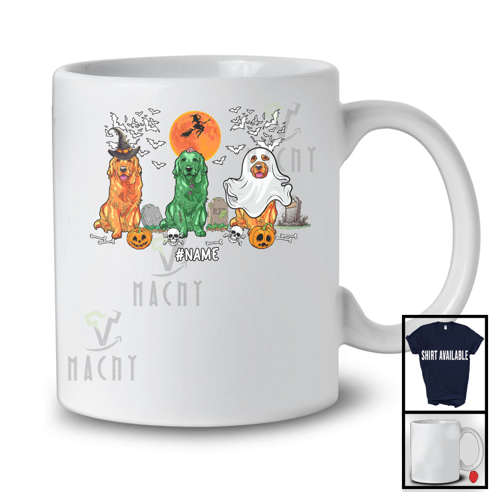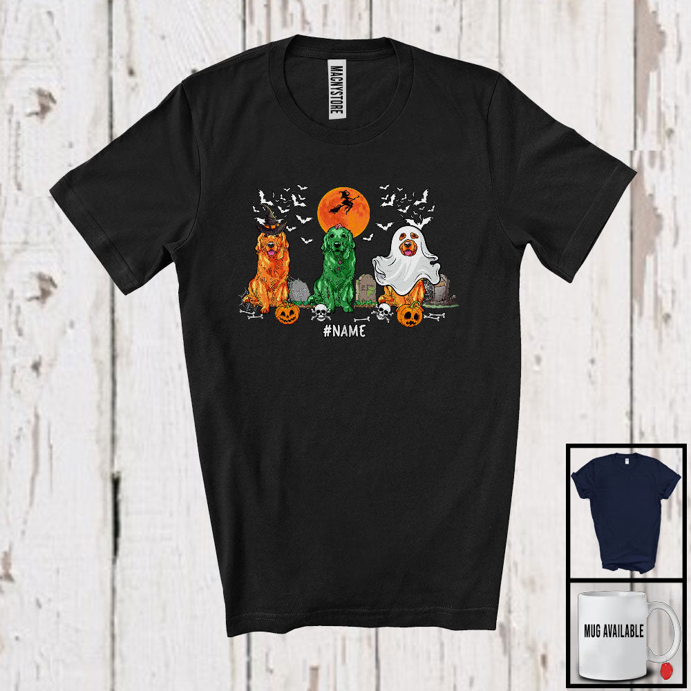 new MacnyStore - Personalized Custom Name Three Costume Golden Retriever; Creepy Halloween Witch Zombie Boo T-Shirt – Macnystore