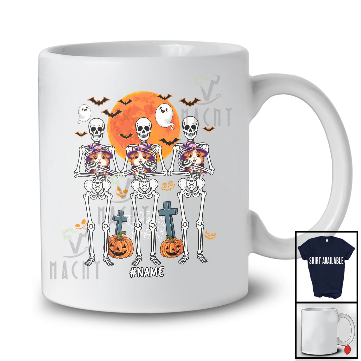 • Personalized Custom Name Three Skeletons Hugging Guinea Pig; Horror Halloween Moon Family T-Shirt. This cotton t-shirt is a durable staple product with a classic fit. One of the most popular items, it has a relaxed style made for everyday and casual wear.