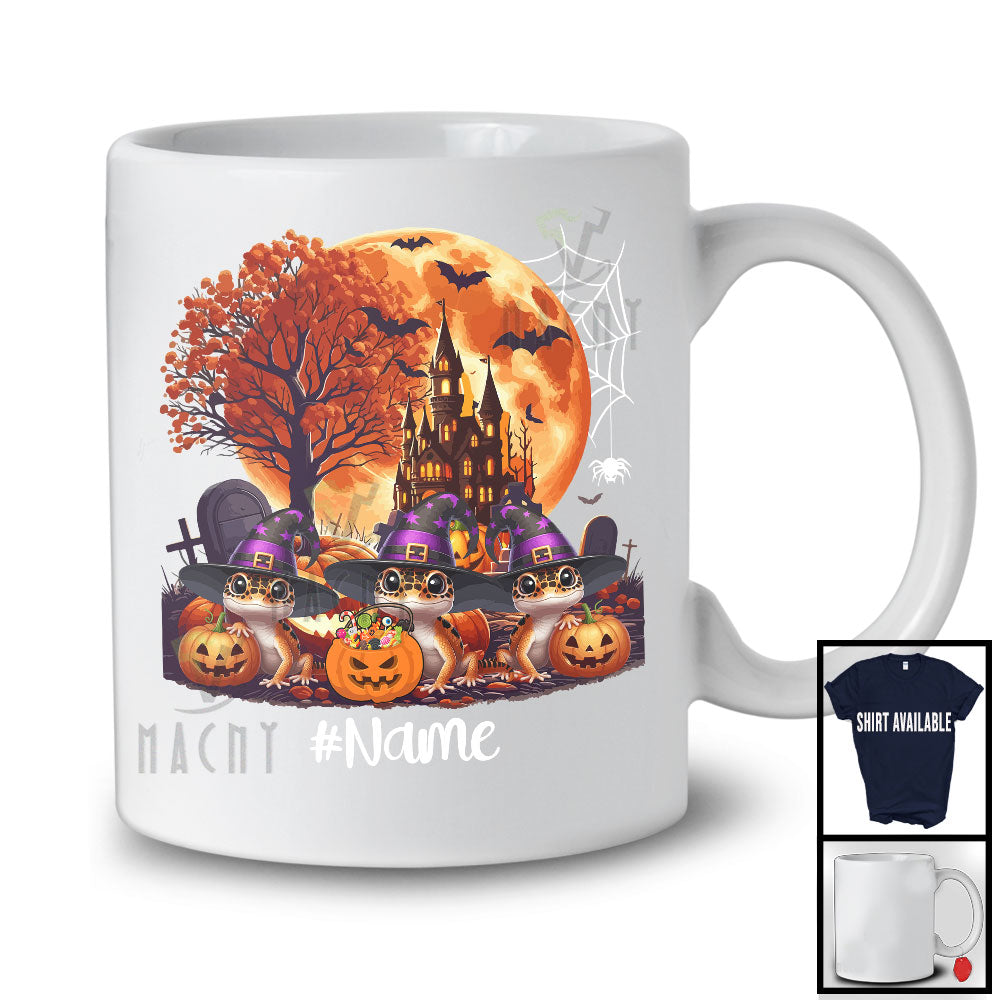 This Personalized Custom Name Three Witch Geckos, Awesome Halloween Moon Candy, Wild Animal T-Shirt is great idea gift for your family, friends in this birthday, christmas, mother's day, father's day, patrick's day or any holiday.