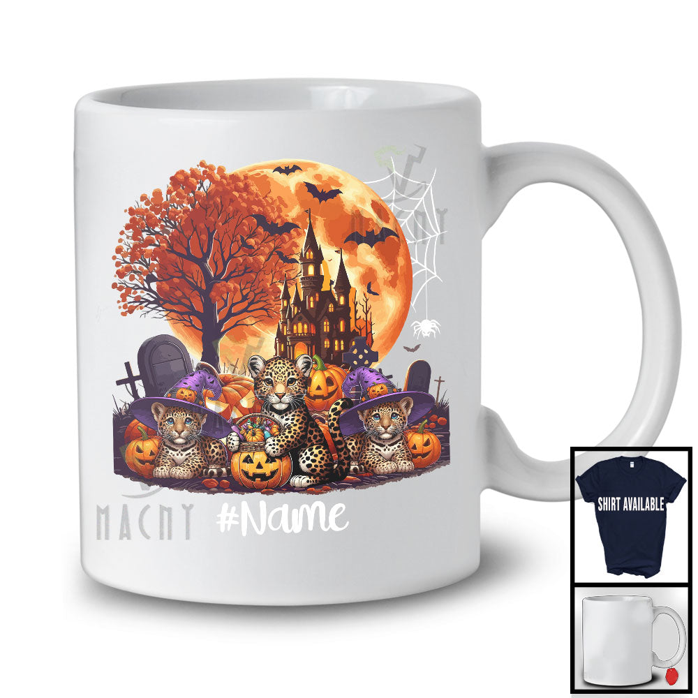 Personalized Custom Name Three Witch Leopards, Awesome Halloween Moon Candy, Wild Animal T-Shirt