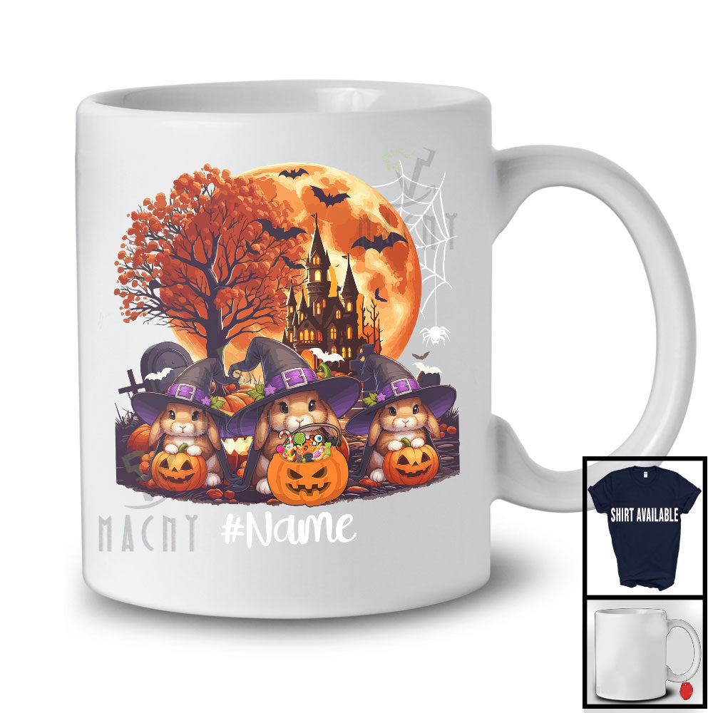 Personalized Custom Name Three Witch Rabbits, Awesome Halloween Moon Candy, Wild Animal T-Shirt. This cotton t-shirt is a durable staple product with a classic fit. One of the most popular items, it has a relaxed style made for everyday and casual wear.