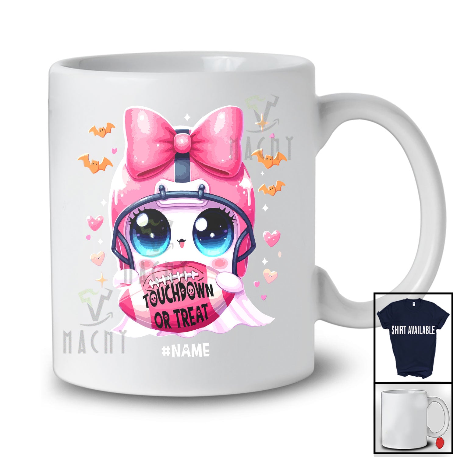 The Personalized Custom Name Touchdown Or Treat; Lovely Halloween Boo Ghost Football Player T-Shirt destined to impress, and priced at only $12.95, for a limited time.