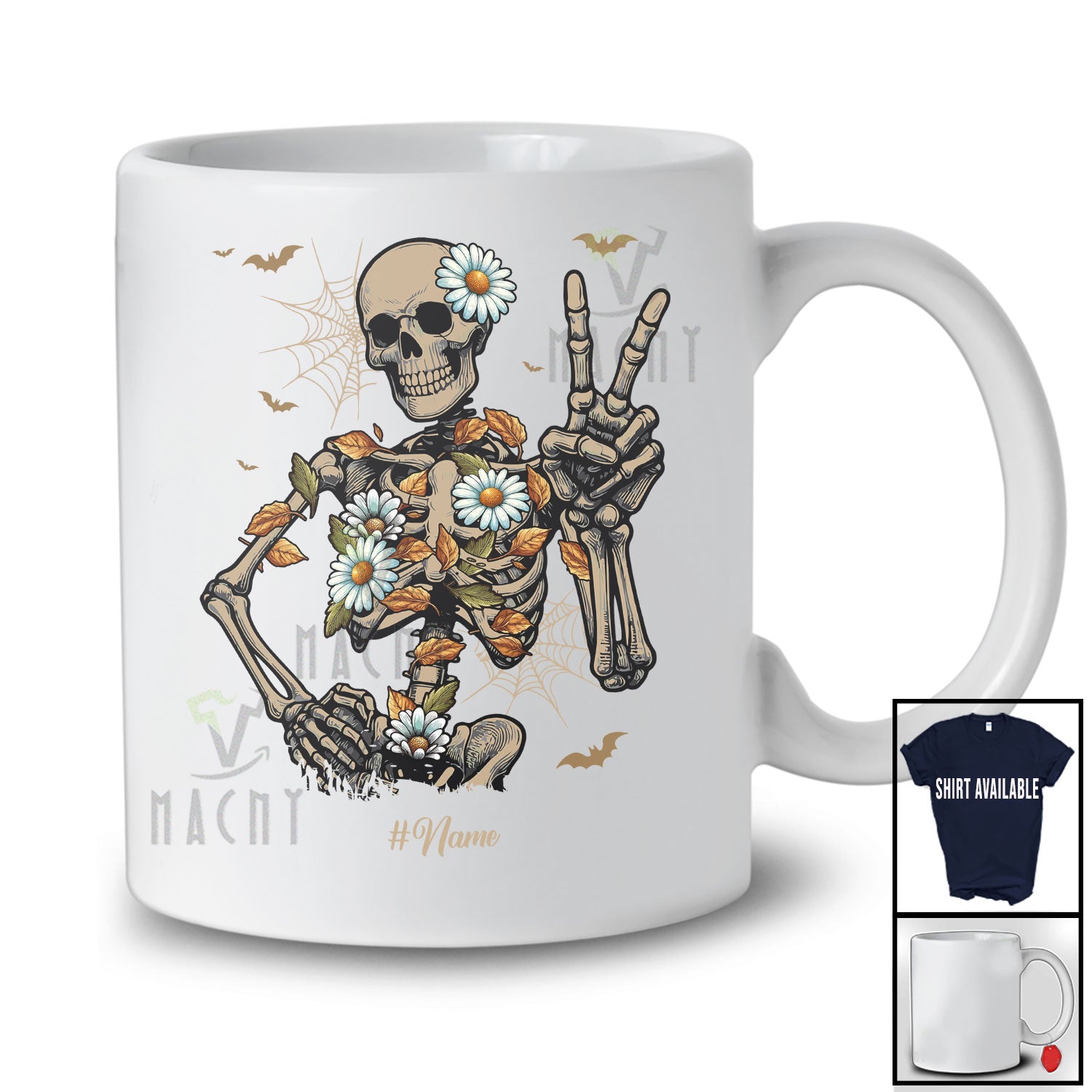 Personalized Floral Fall Skeleton; Awesome Halloween Custom Name Daisy Flowers; Family T-Shirt. This cotton t-shirt is a durable staple product with a classic fit. One of the most popular items, it has a relaxed style made for everyday and casual wear.