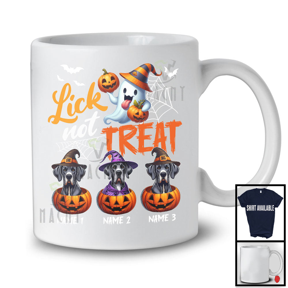 • Personalized Lick Not Treat, Lovely Halloween Three Custom Name Great Dane Witch Owner T-Shirt. This cotton t-shirt is a durable staple product with a classic fit. One of the most popular items, it has a relaxed style made for everyday and casual wear.